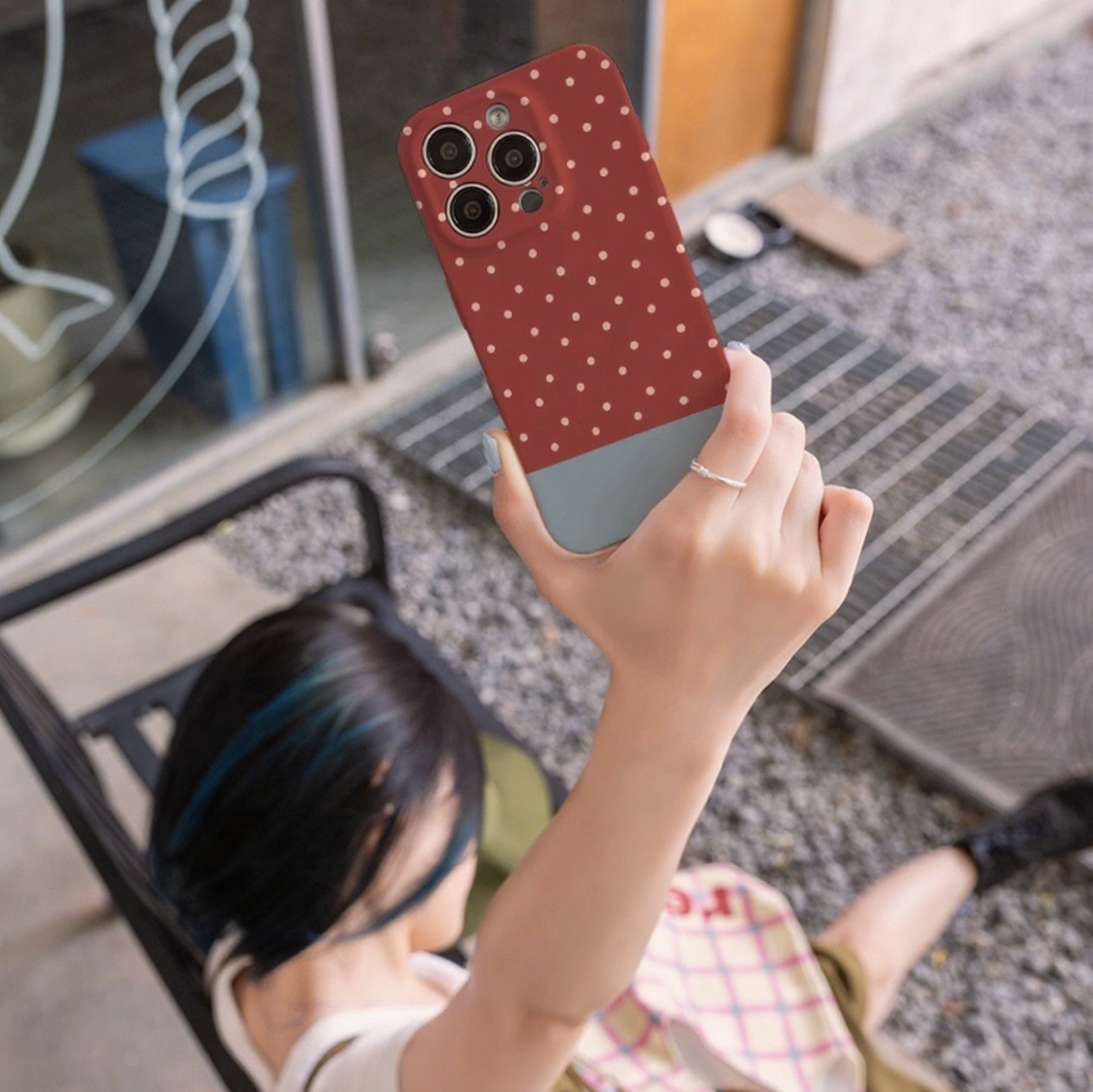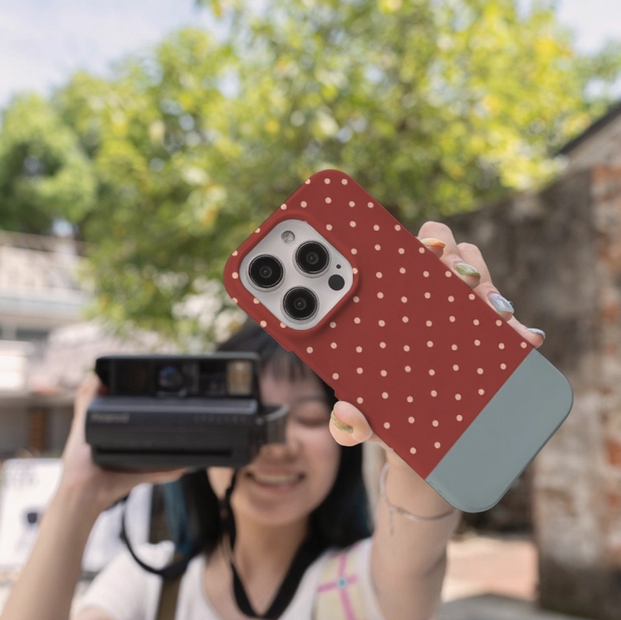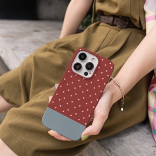简约红底波点适用苹果16promax手机壳iPhone14菲林13新款 12pro创意情侣17plus小众xs少女7全包xr防摔菲林硬壳