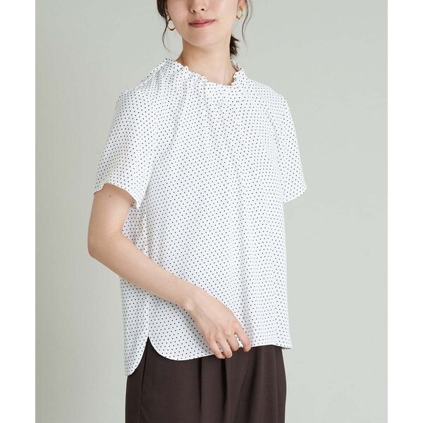 雪纺衫 日单品牌夏季 衬衫 气质OL松紧百褶小圆点印花短袖 30551 新款