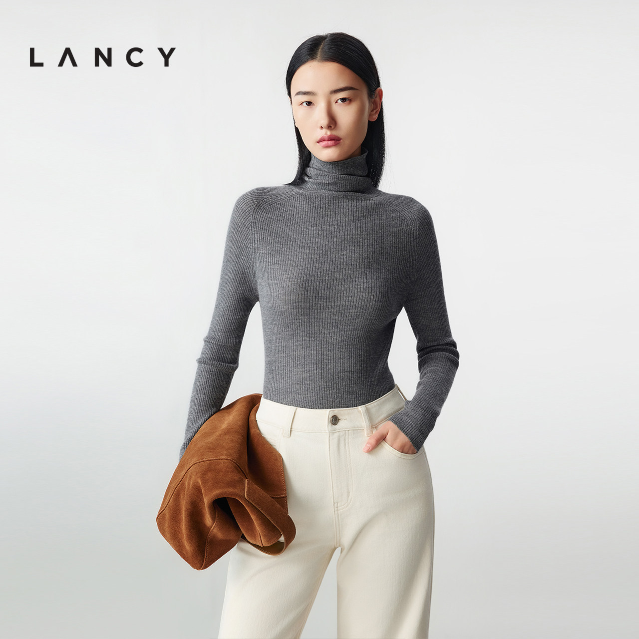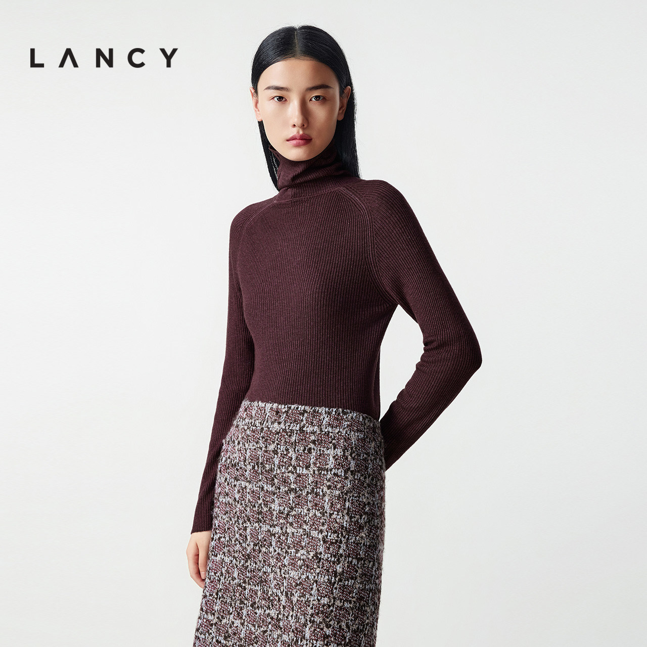 朗姿2025年冬新款 LANCY 百搭高领修身 针织衫 女 打底衫 100%羊毛