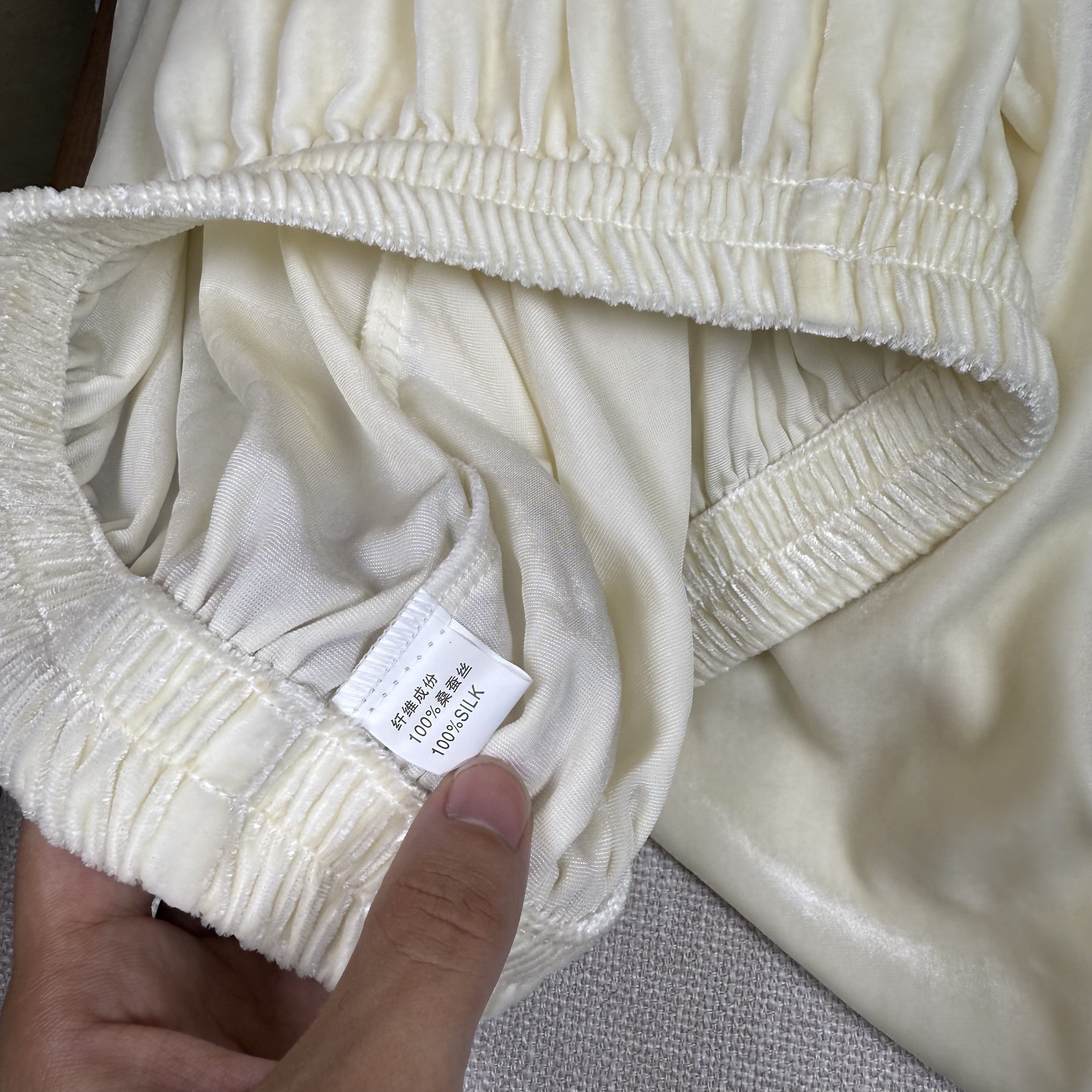2025新款 通勤穿搭秋季 百搭 休闲版 100%桑蚕丝奶白色真丝丝绒直筒裤