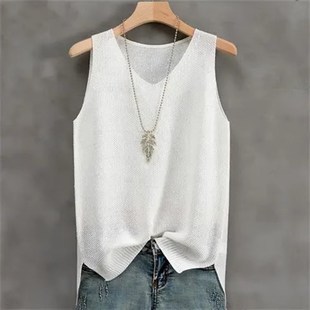 无袖 打底衫 薄上 胖mm夏外穿针织吊带背心女内搭宽松大码 2024新d款