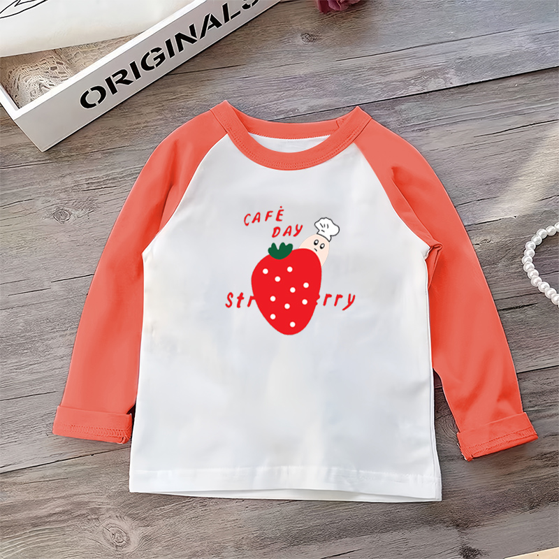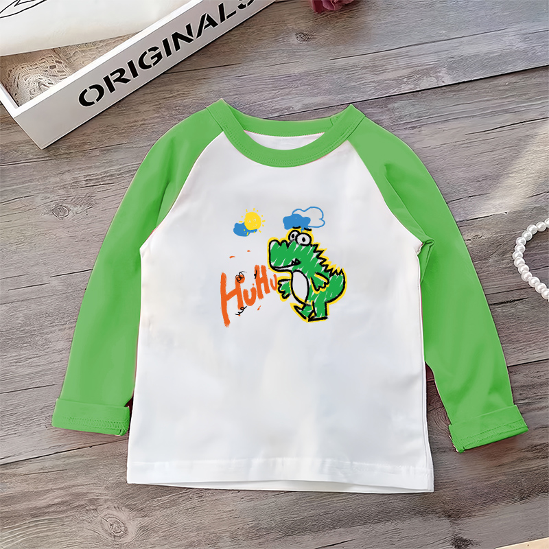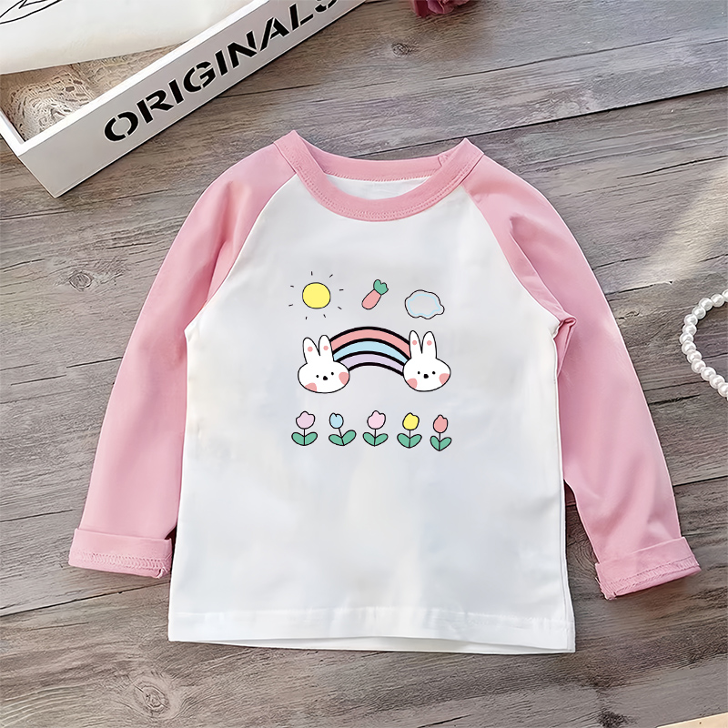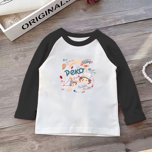 印花拼色上衣 内搭宝宝打底衫 春秋男女童纯棉长袖 t恤儿童百搭新款