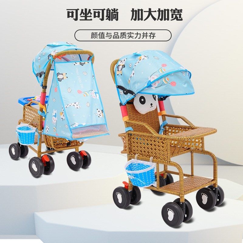 婴儿竹藤推车轻便加宽加大可坐可躺宝贝小孩藤椅藤编童车夏季 夏天