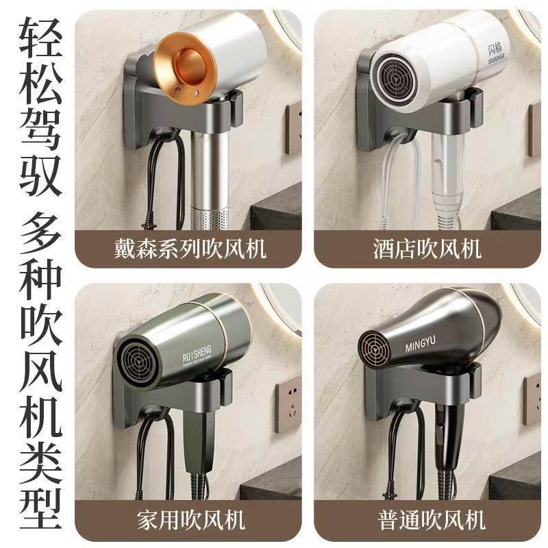 枪灰吹风机置物架浴室电吹风收纳挂架免打孔卫生间壁挂风筒支架子