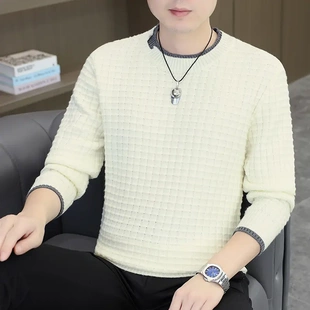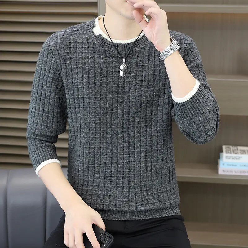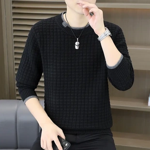 打底 百搭针织衫 卡尔精品服饰高档简约圆领假两件毛衣男士 秋冬时尚