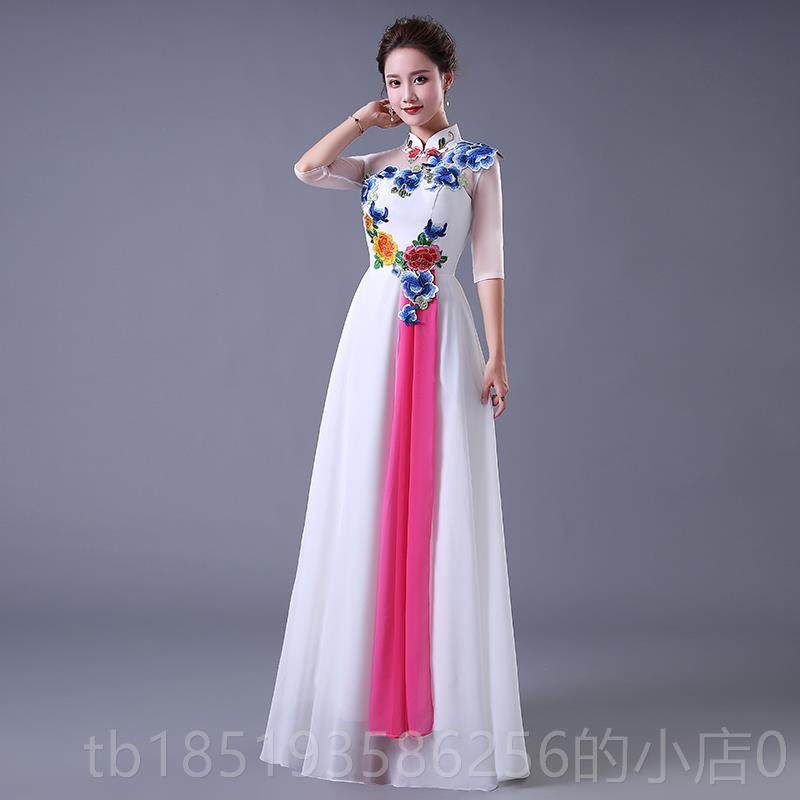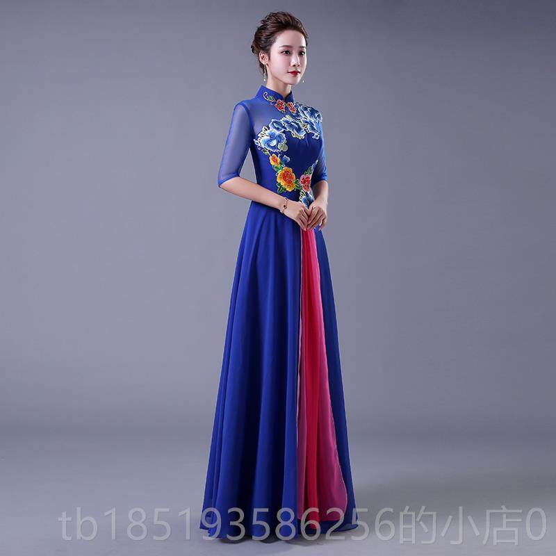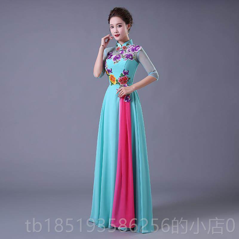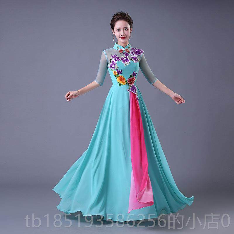 高档国庆合服长裙中出服成人女20唱25新款 老年人晚礼服演民族舞中