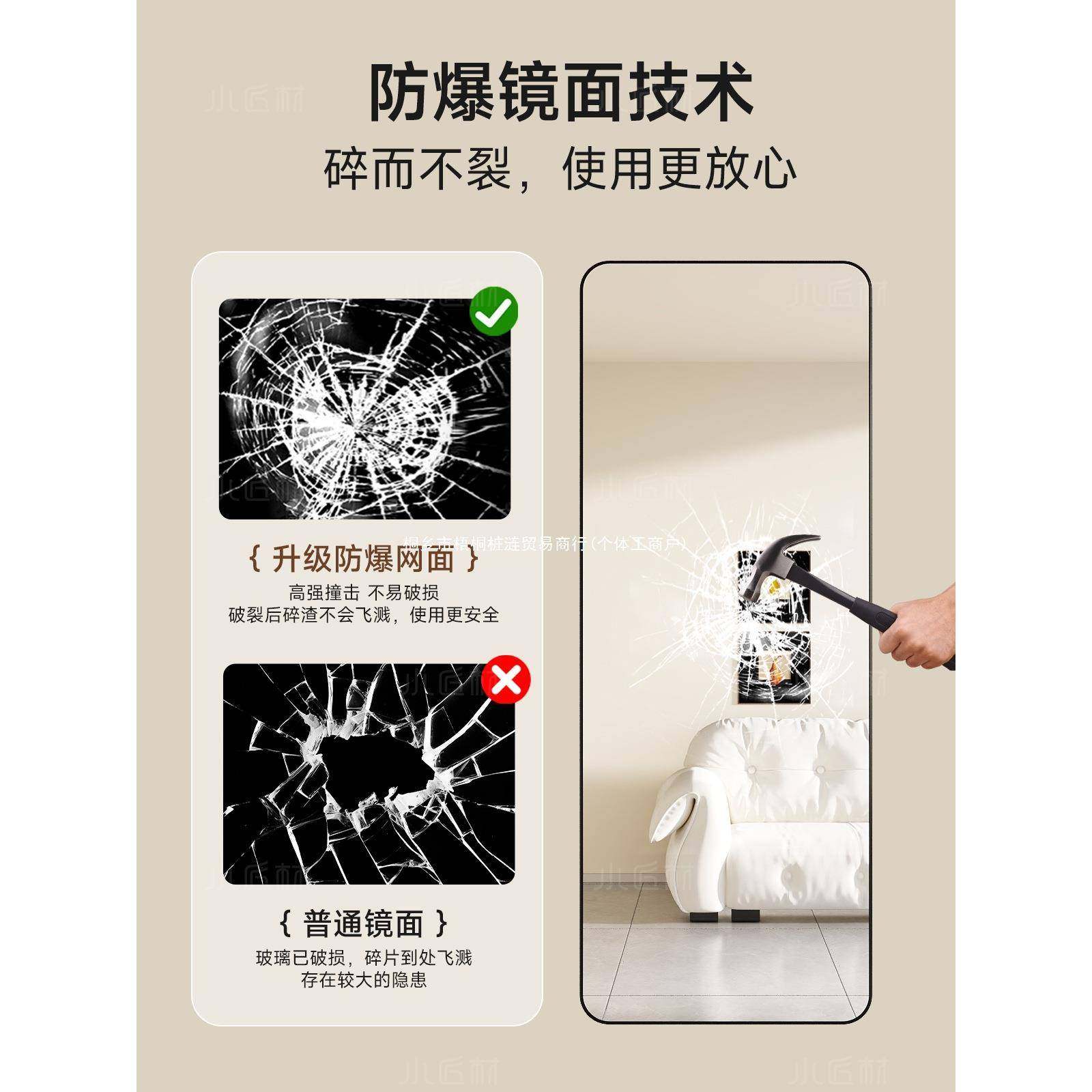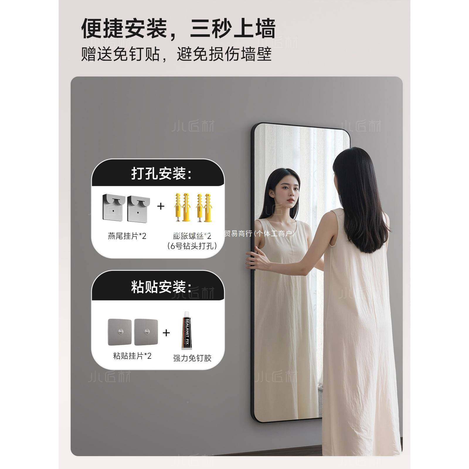 轻奢打镜子墙贴自粘EKV全身镜用穿衣镜挂墙卧室免孔宿舍壁挂家试