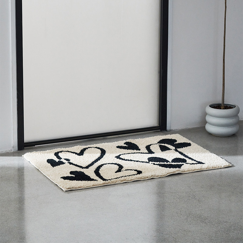 莫语 黑白北欧风可爱入户脚垫进门垫客厅卧室地毯 爱心簇绒地垫