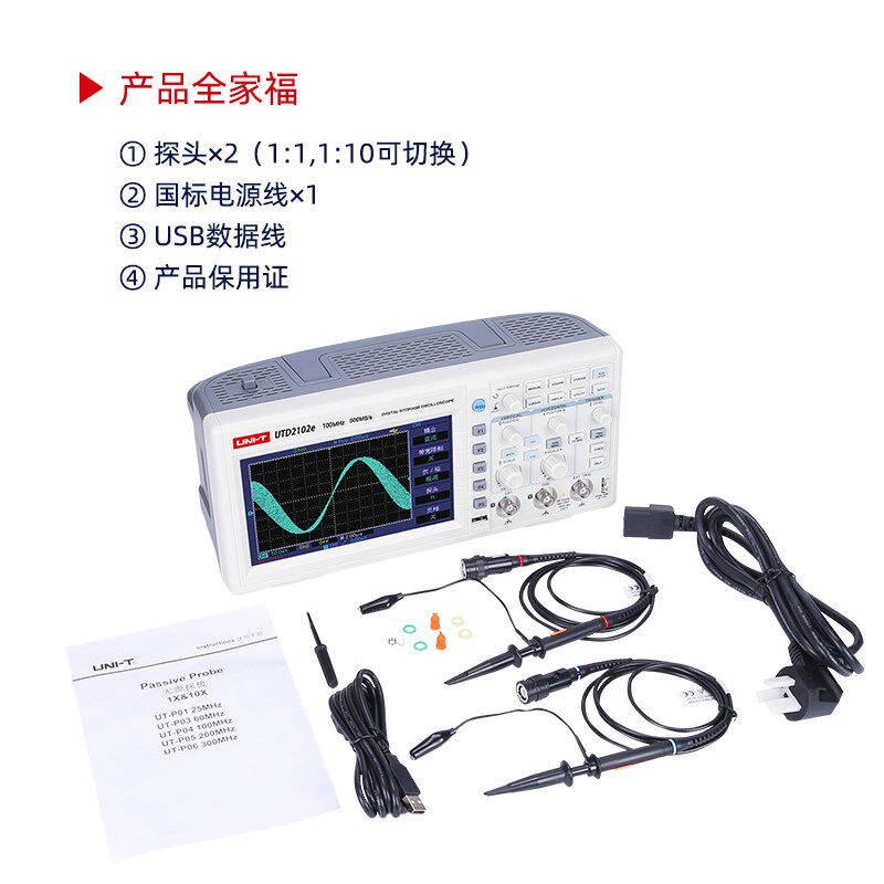 优利德UTD2102CEX数字示波器四通道模拟100MHz带宽波形高压探头