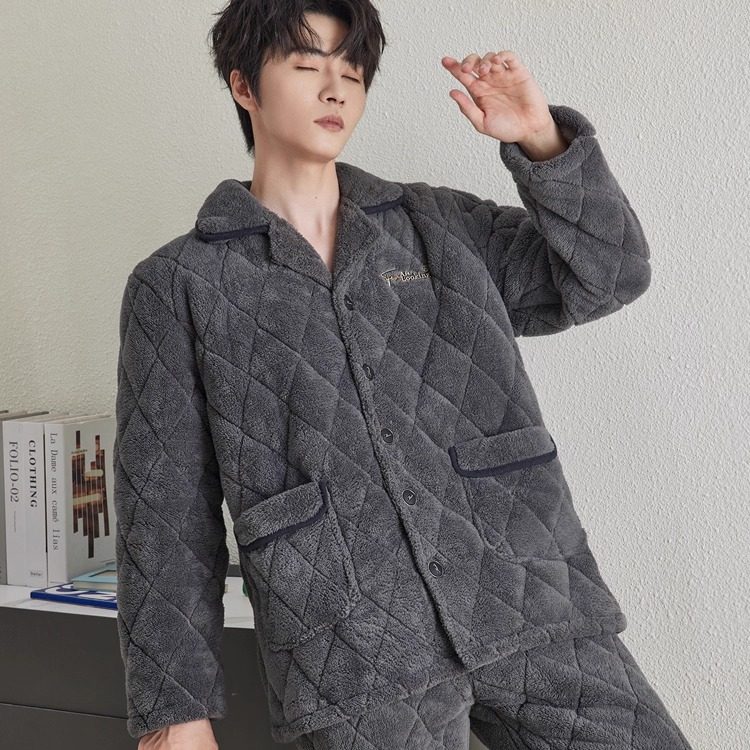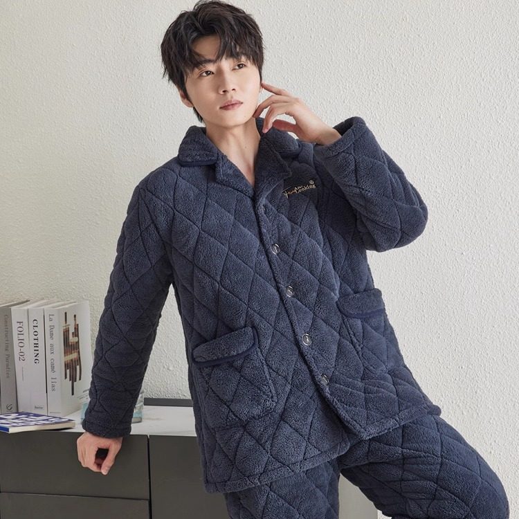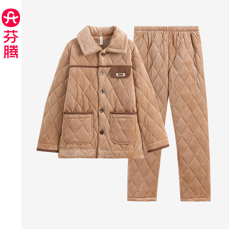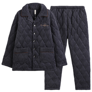 三层加厚夹棉保暖家居服套装 专柜睡衣男冬季 可外穿 清仓 芬腾断码