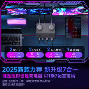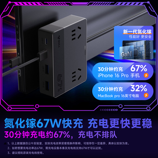 公牛多口usb充电器67w多功能手机电脑笔记本超级快充电头适用于苹果iphone17华为vivo氮化镓桌面充电站type