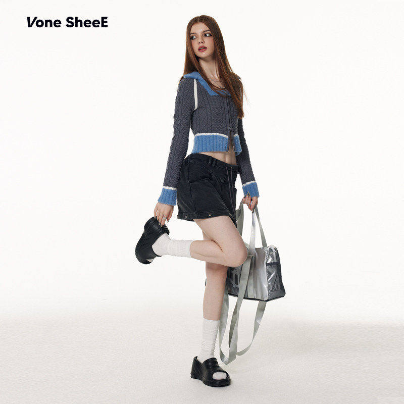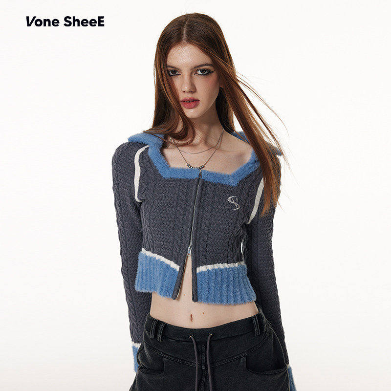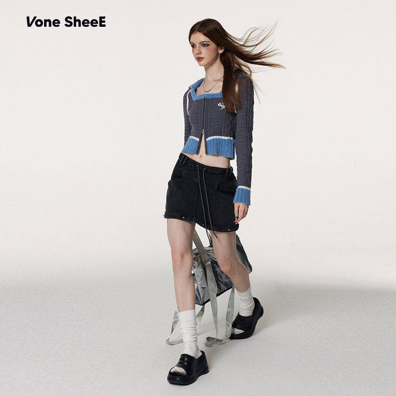 sheeE甜酷辣妹设计感小众针织开衫 Vone 软糯上衣短款 昕怡专享