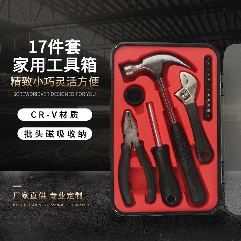 17件套家用五金工具箱全套房地产礼品组套新房装 修工具组套装