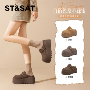春季 新款 增高平底鞋 复古百搭一脚蹬单鞋 星期六厚底勃肯鞋 爆款 女鞋