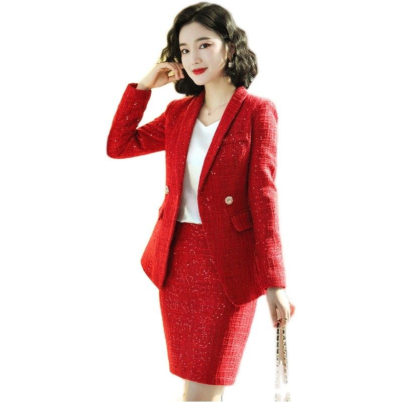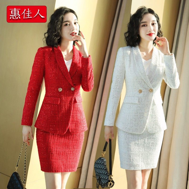 上衣长裙气质套装 百搭高腰显瘦短款 面料时尚 自制设计感赫本风西装