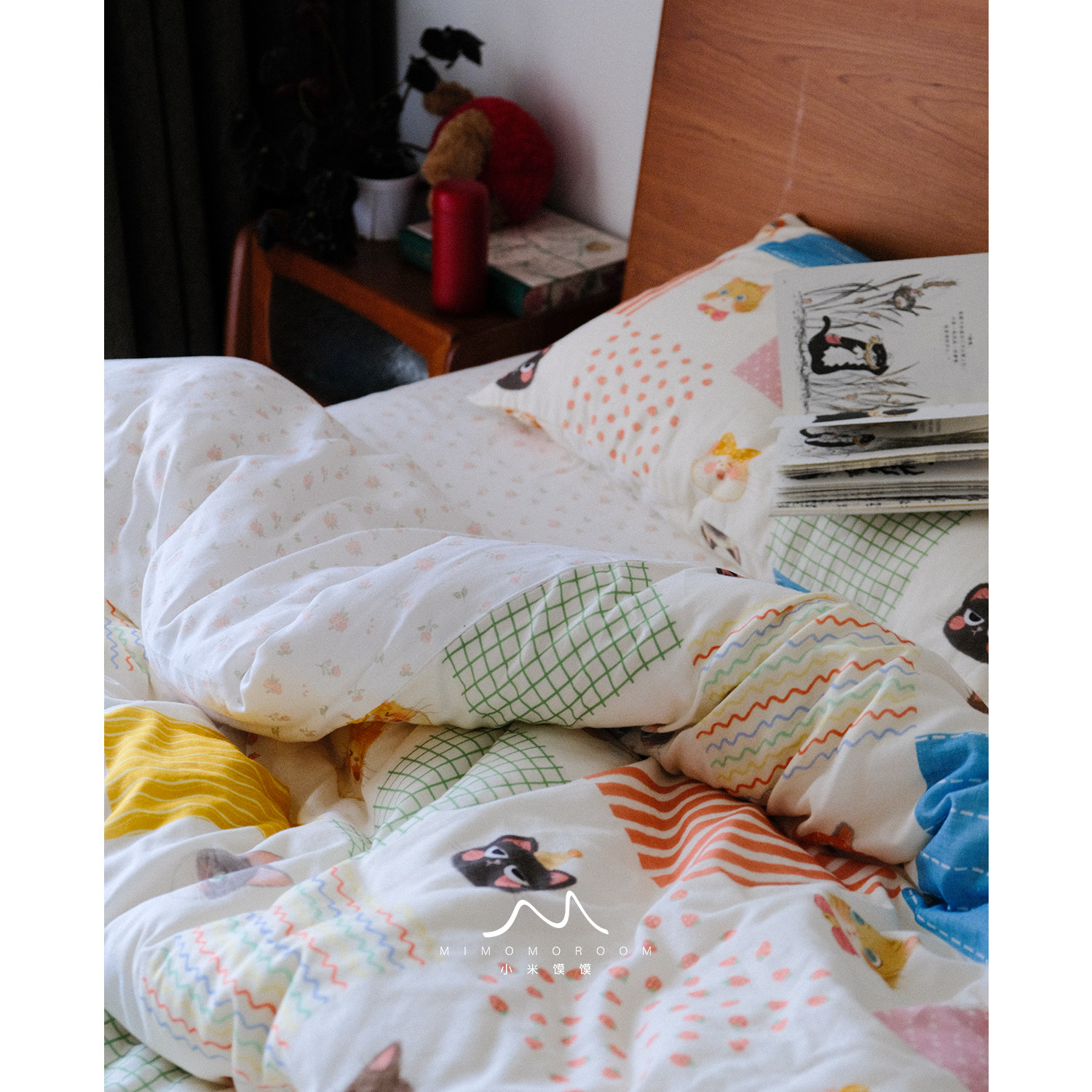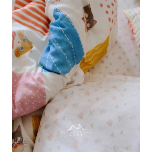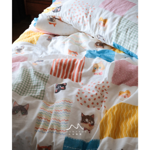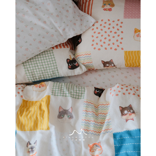 原创图案奶糖猫饼·纯棉纱布卡通可爱手绘秋冬被套床单床笠四件套
