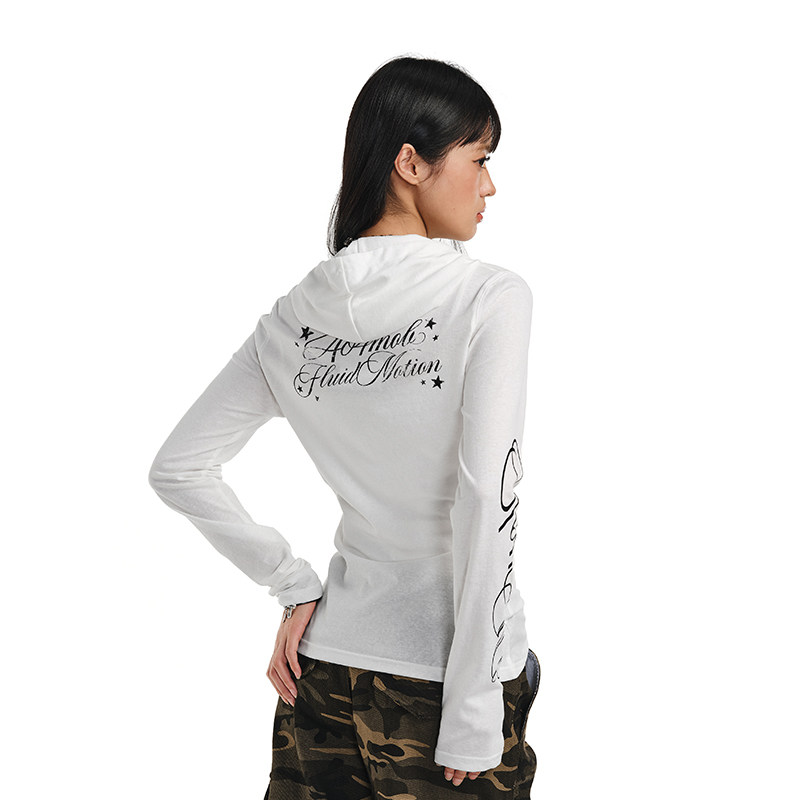 薄纱透气长袖 连帽修身 T恤上衣 女2026夏美式 404MOB哥特风防晒罩衫
