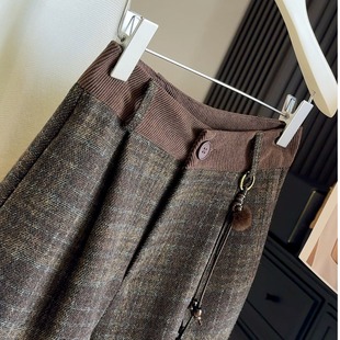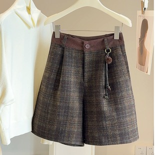 子时尚 裤 百搭宽松靴裤 中裤 复古格子毛呢短裤 五分裤 2025秋冬新款