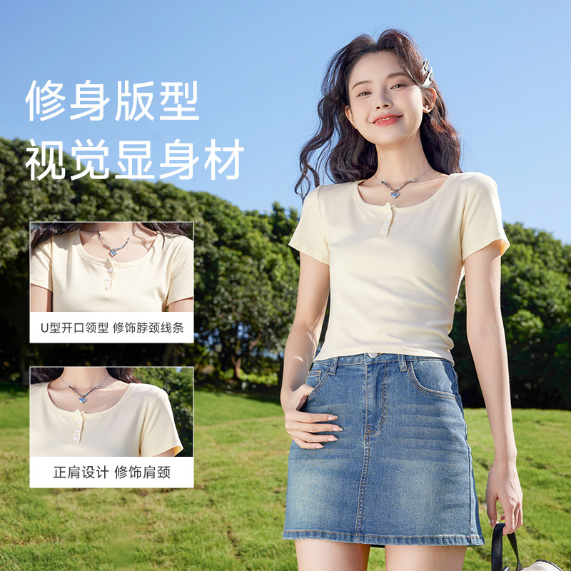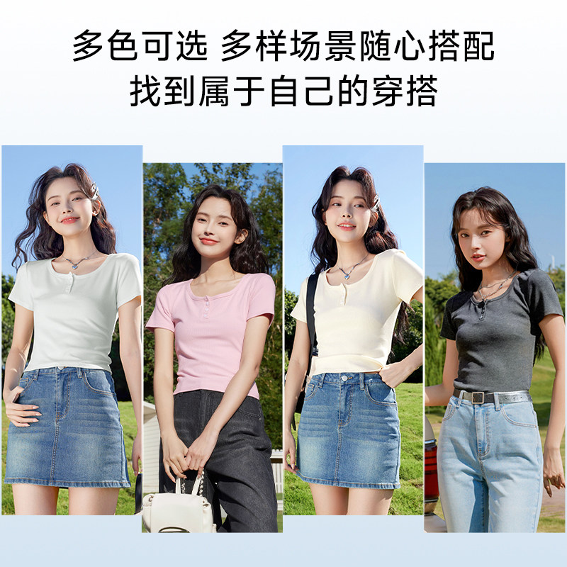 显瘦通勤百搭上衣Q 弹力亲肤修身 班尼路U领短袖 t恤女春夏2026新款