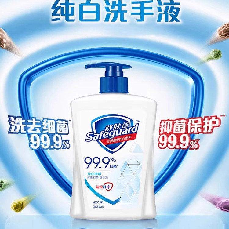 舒肤佳洗手液家用抑菌便携式 官方 纯白清香大瓶420ml儿童适用正品