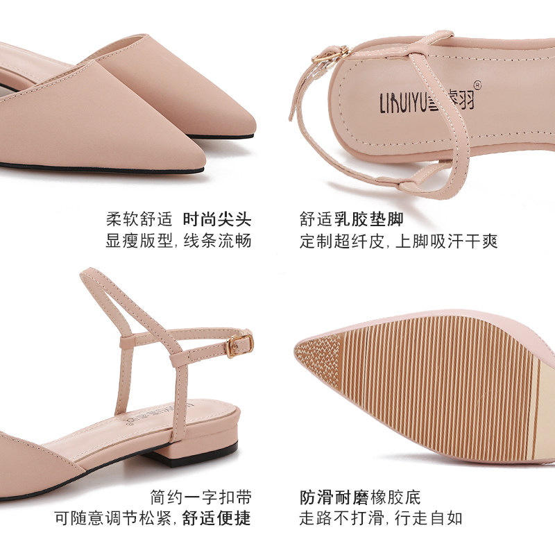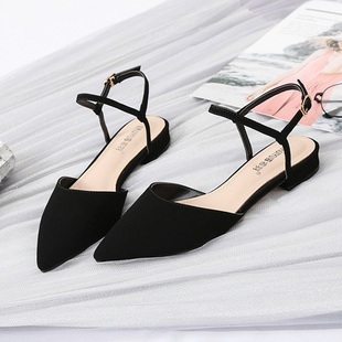 子百搭单鞋 尖头一字扣带仙女风温柔鞋 女平底夏2020年新款 包头凉鞋