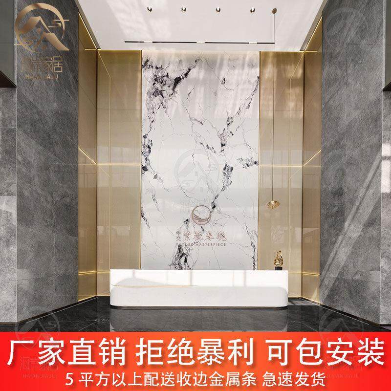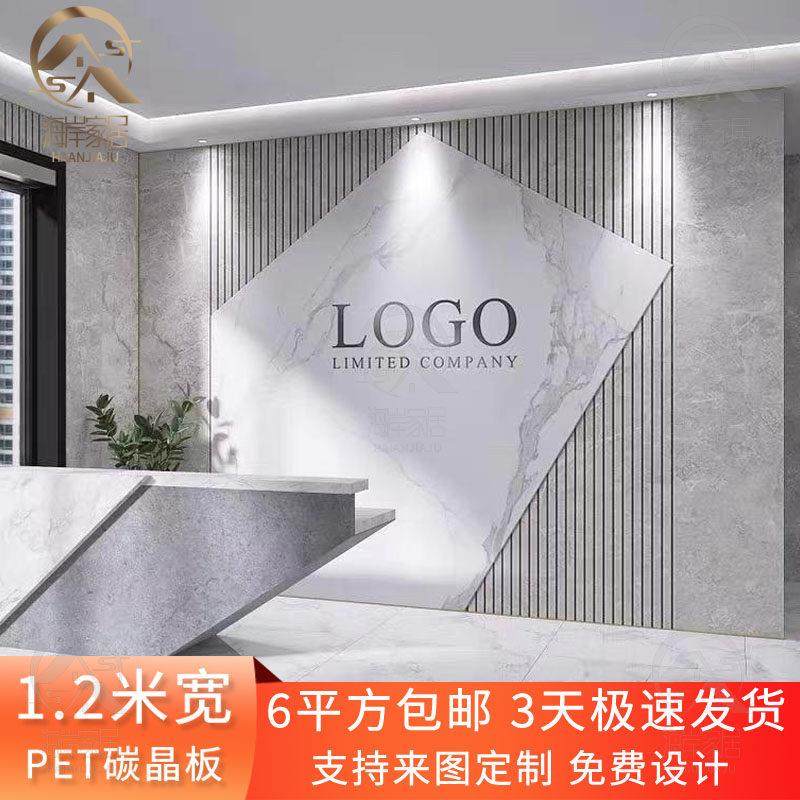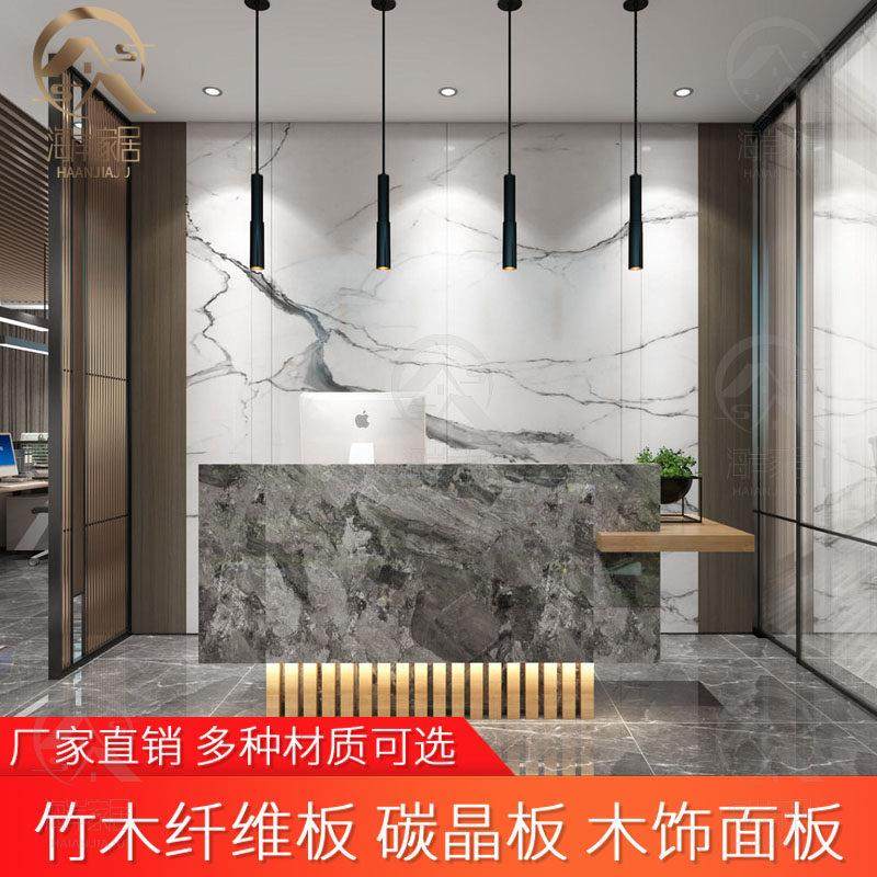 碳晶板公司前台背景墙木饰面碳岩板竹炭纤维美容院大理石纹装 饰板