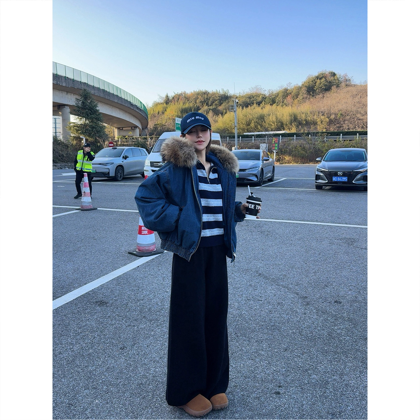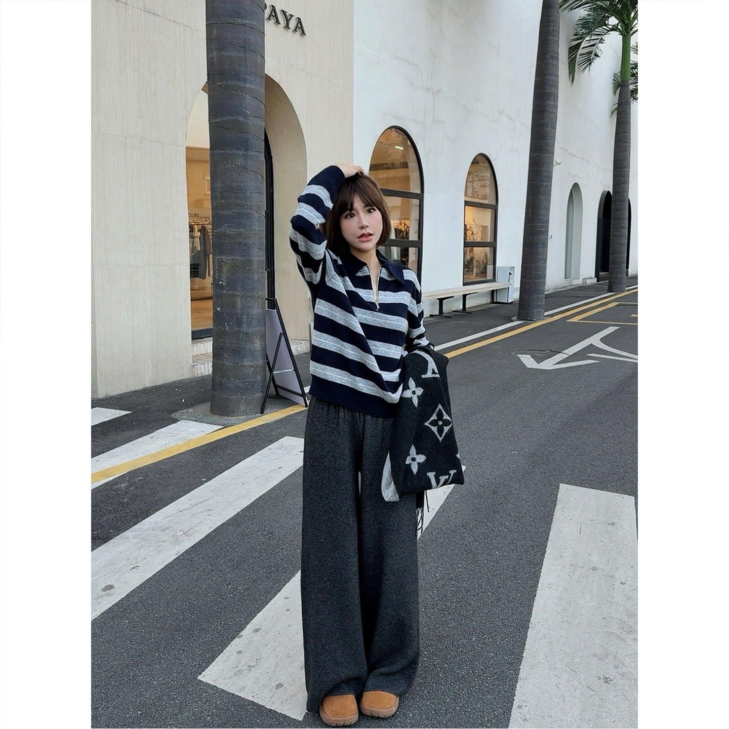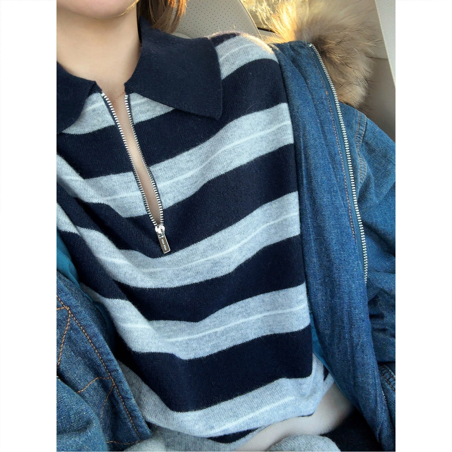 女 miu系进口26支双股100%美莉诺羊毛条纹POLO针织衫 ASBR 渠道货