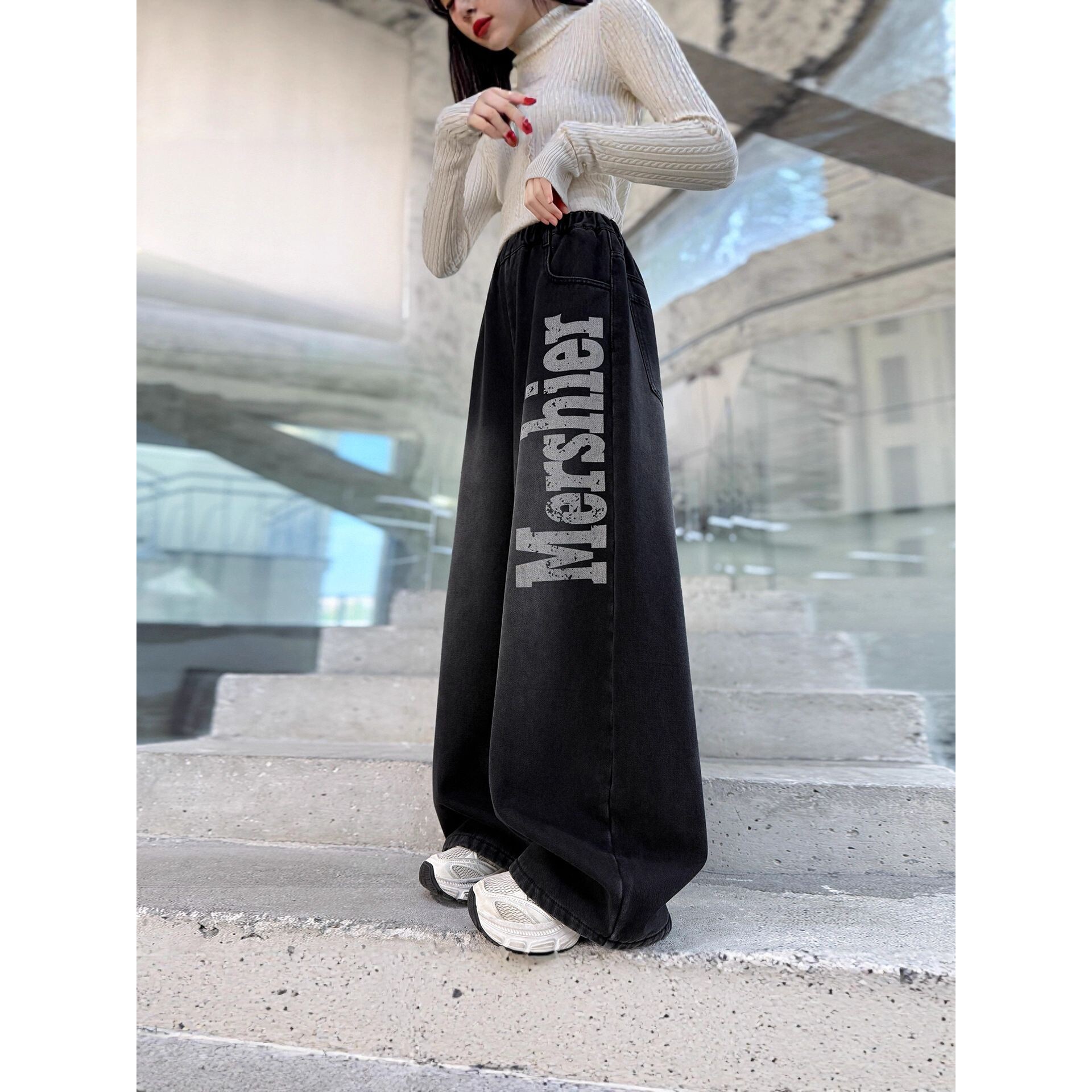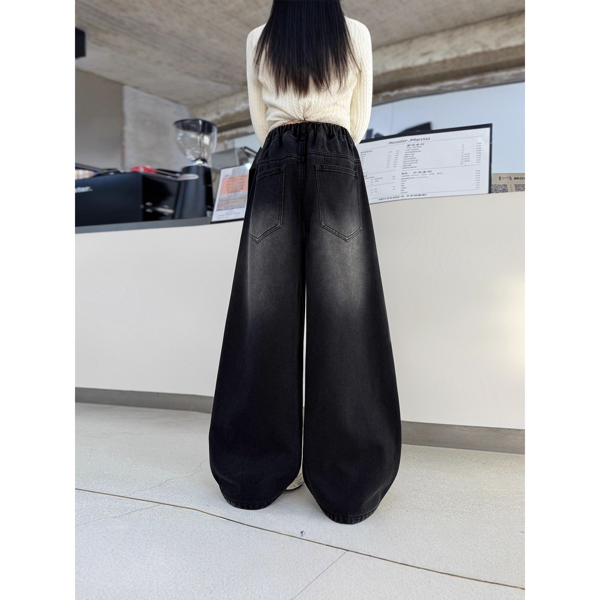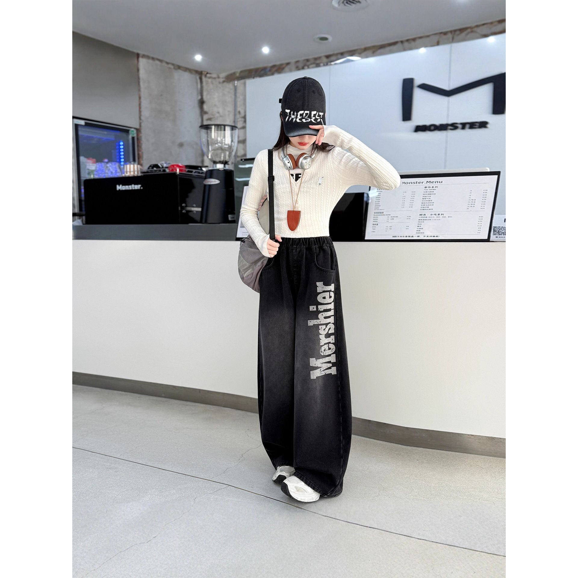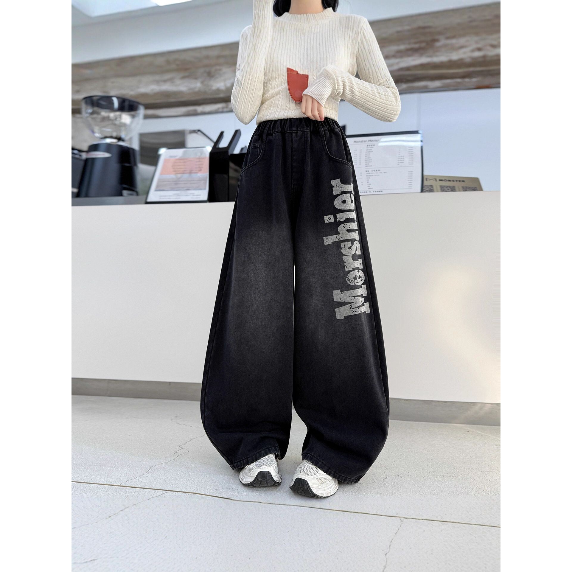 大童女孩宽松阔腿裤 弯刀牛仔裤 子冬季 儿童加绒裤 女童秋冬2025新款
