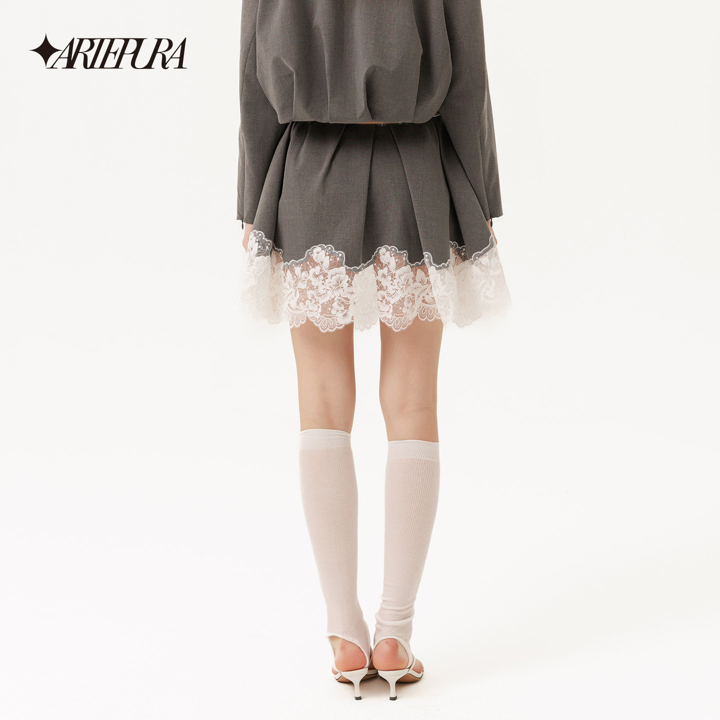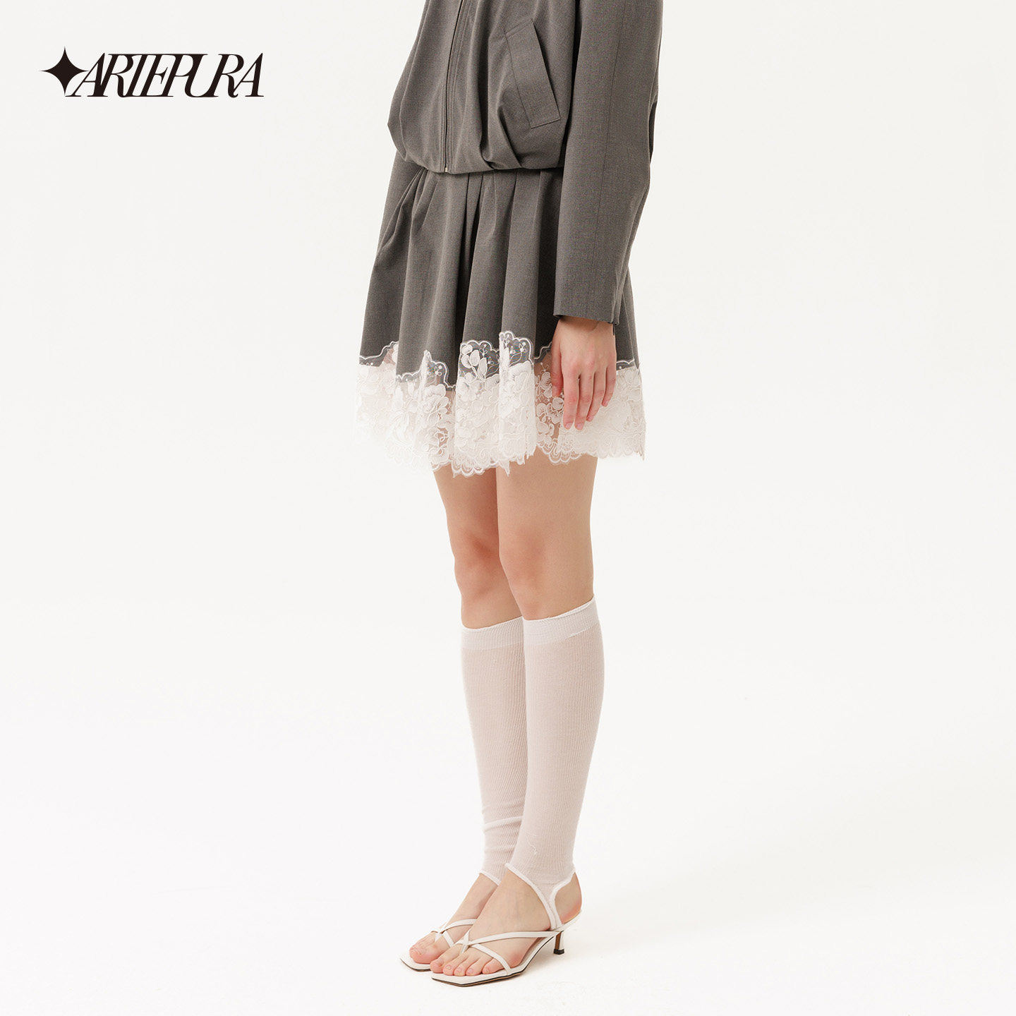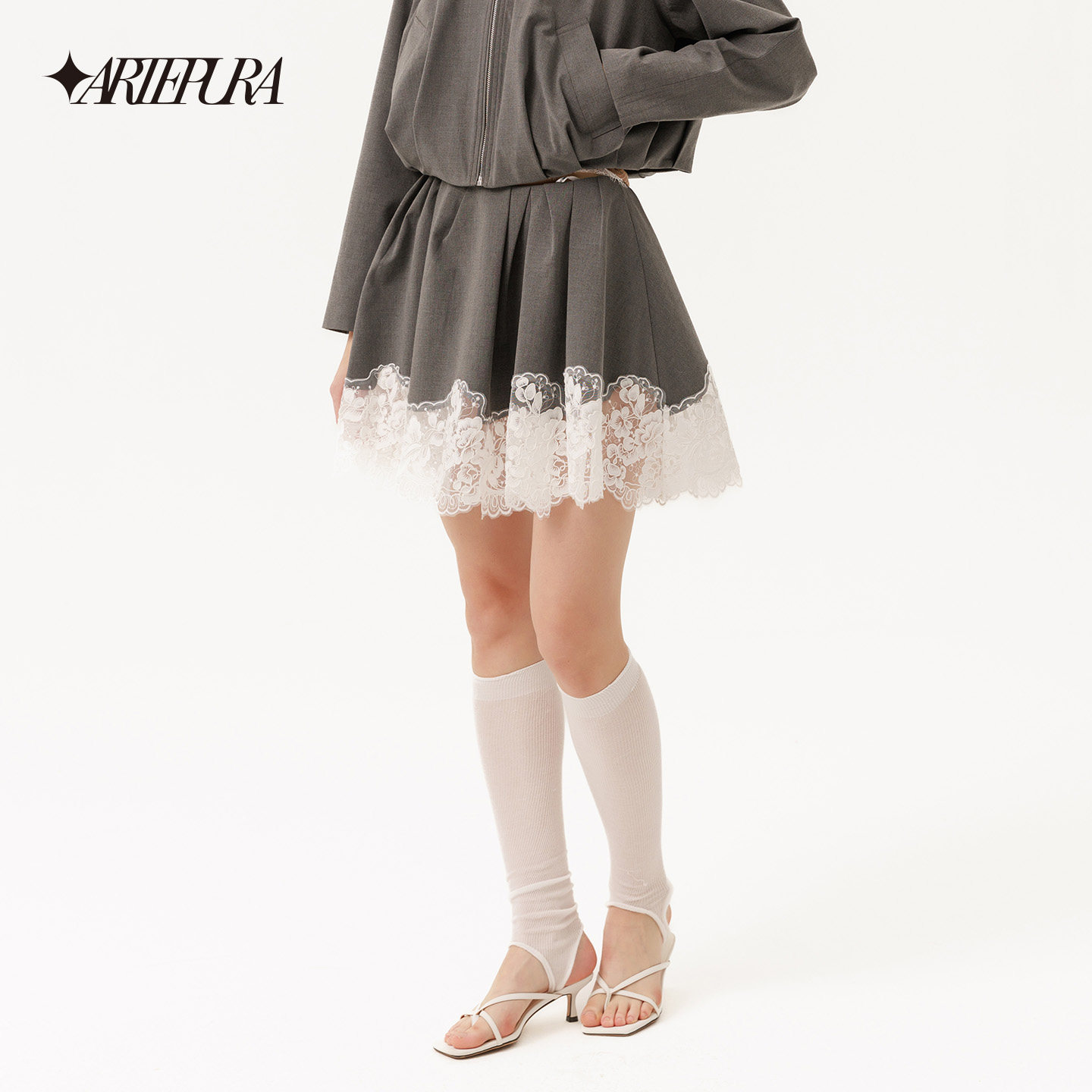 灰色蕾丝拼接打褶半裙女不规则花边下摆裙 新款 ARTE PURA2026春季