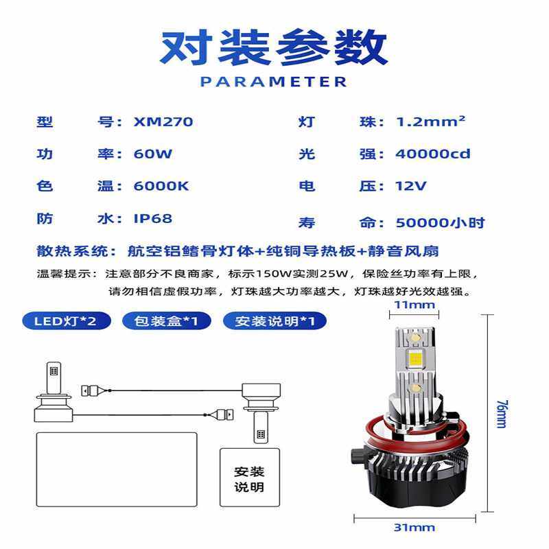 汽车led大灯h7近光灯泡h4远近一体h1超亮h11强光9005车灯改装