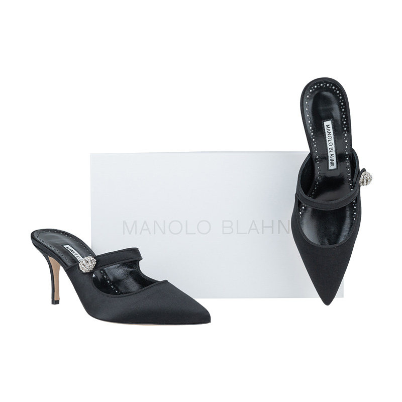 促销 Manolo 女夏季 穆勒鞋 Blahnik女士缎面高跟鞋