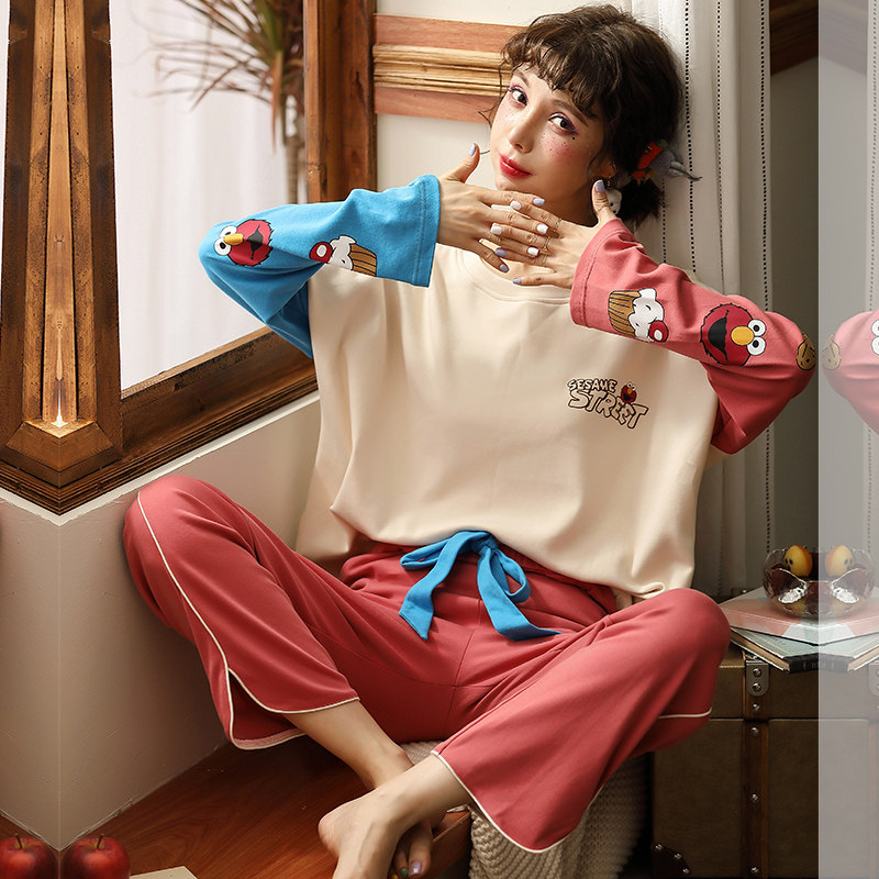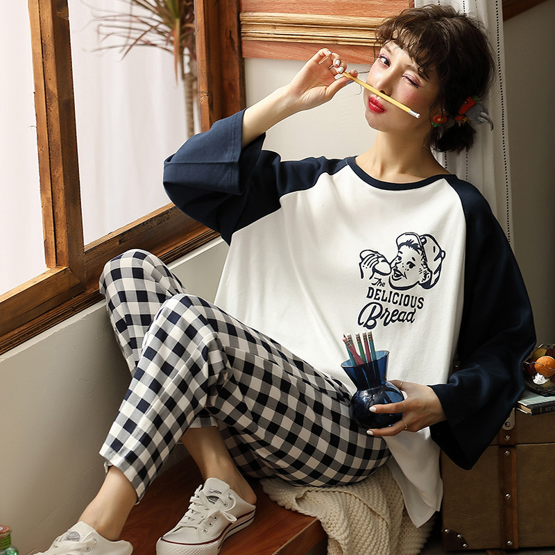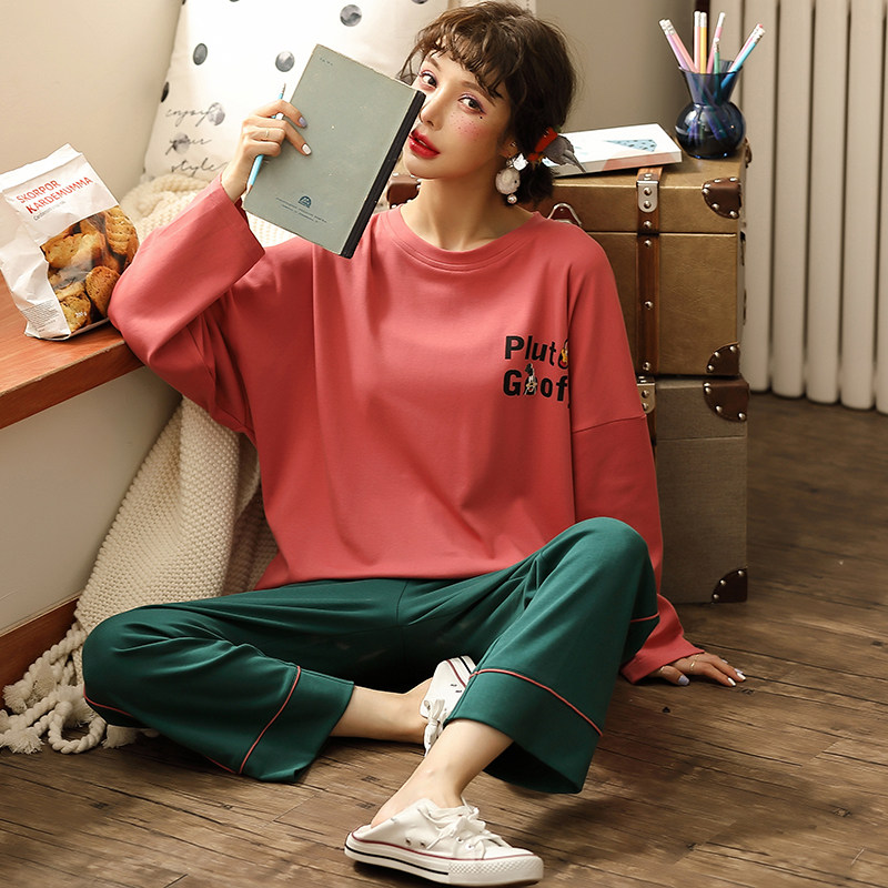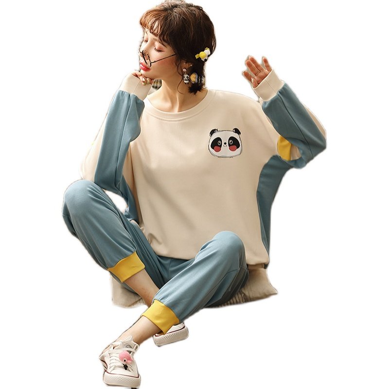 圆领套装 全棉长袖 秋冬季 纯棉可外穿可爱型休闲女士睡衣2020年新款