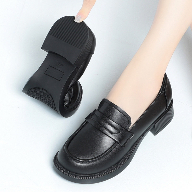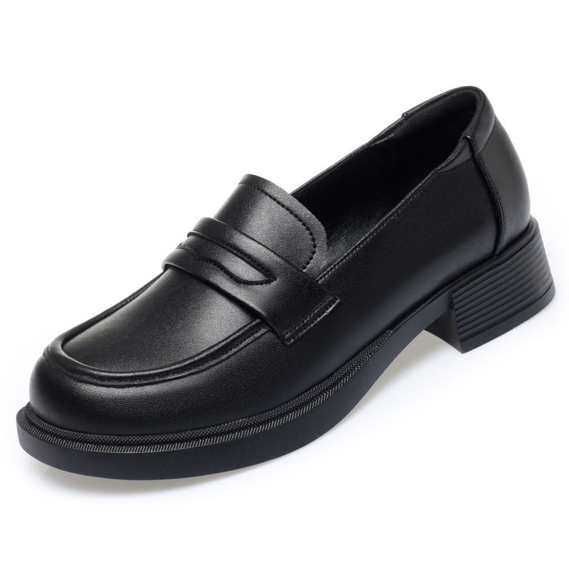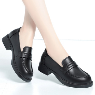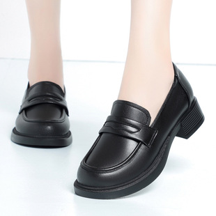 新款 单鞋 真皮乐福鞋 平跟舒适妈妈鞋 子 女英伦黑色小皮鞋 春秋季