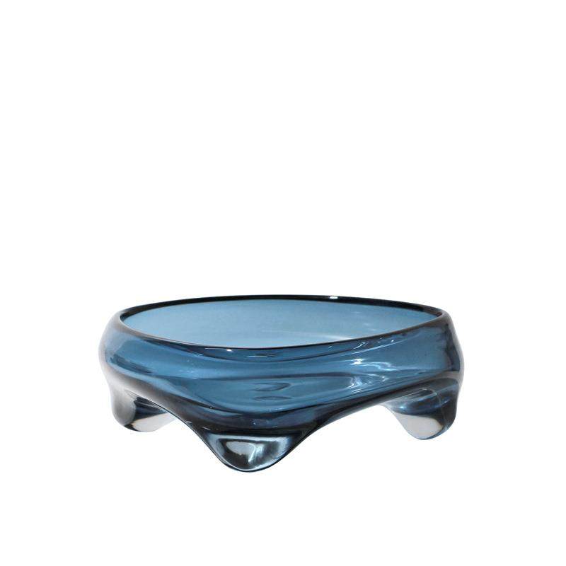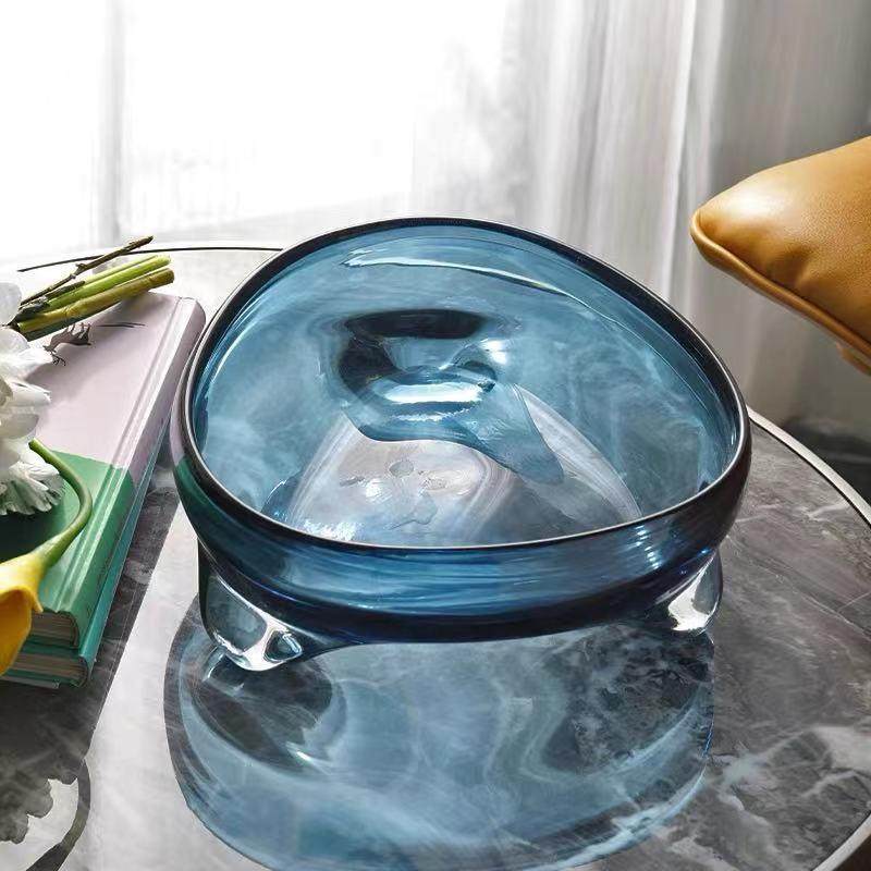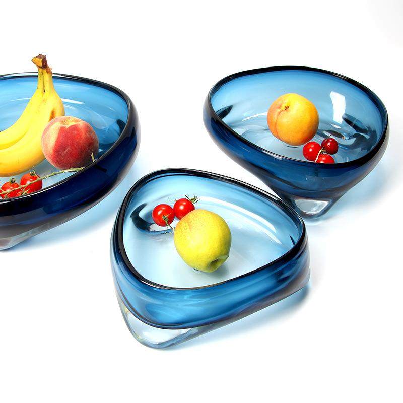 茶简约现代色蓝色透玻璃水果盘摆明件餐三角果盘桌样板间收纳托盘