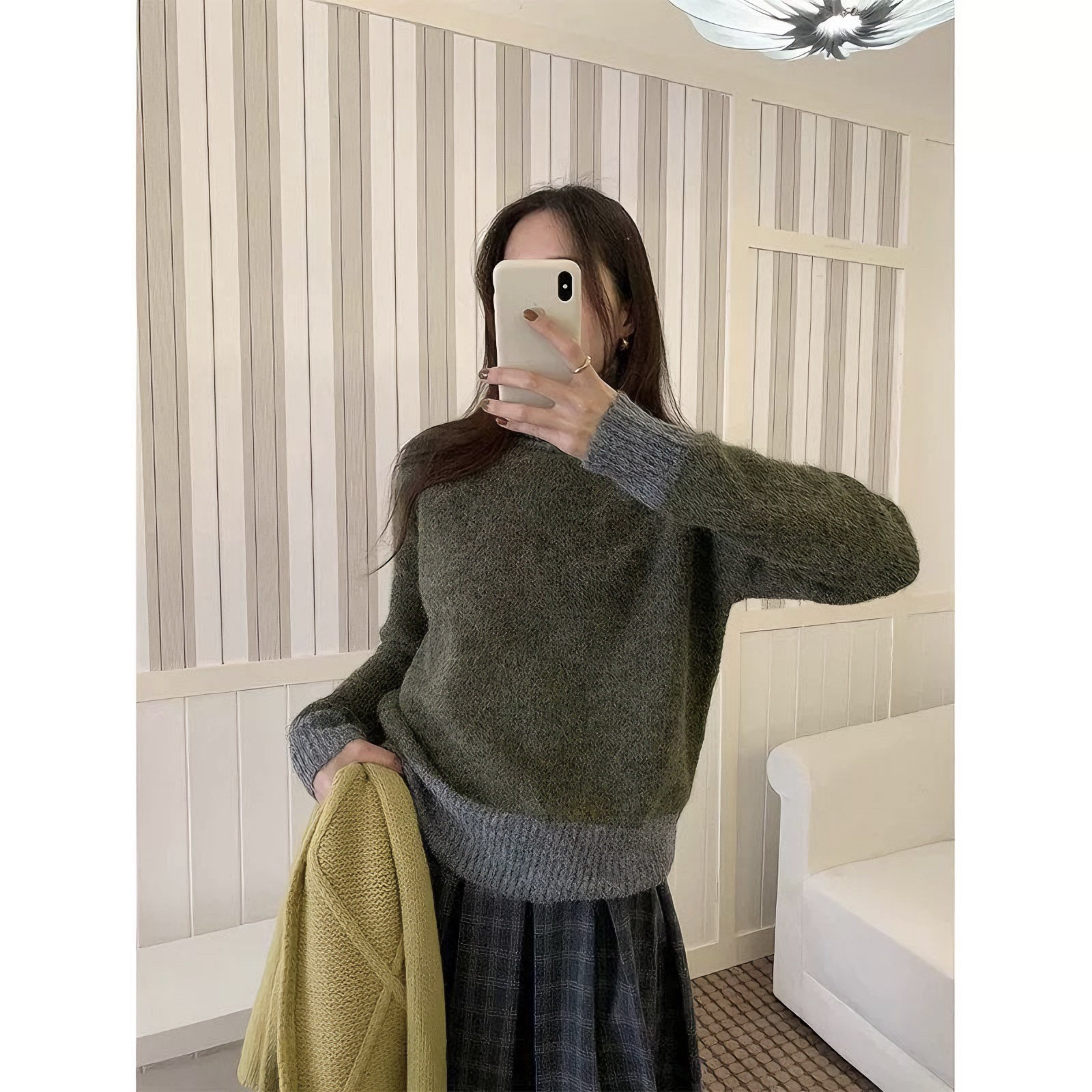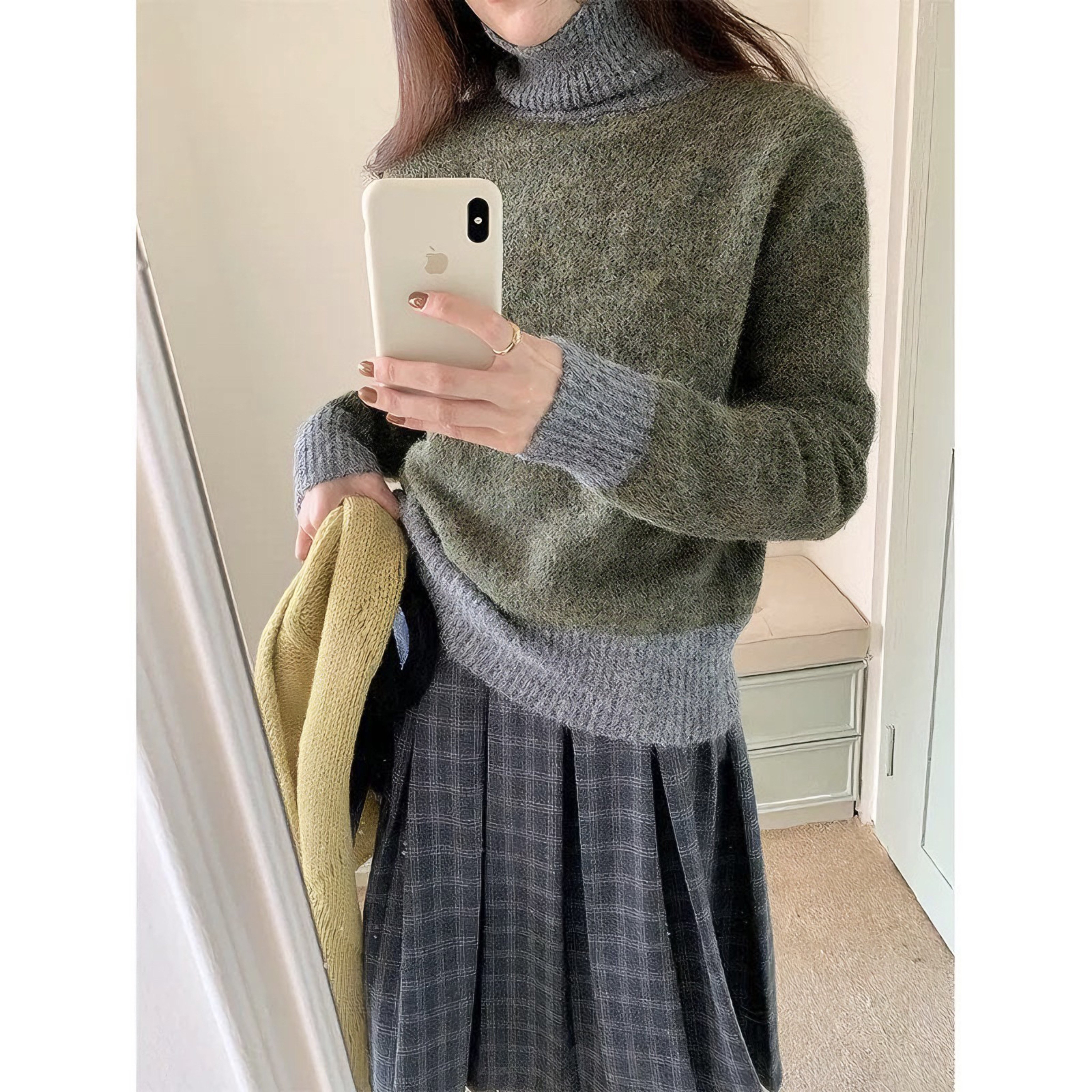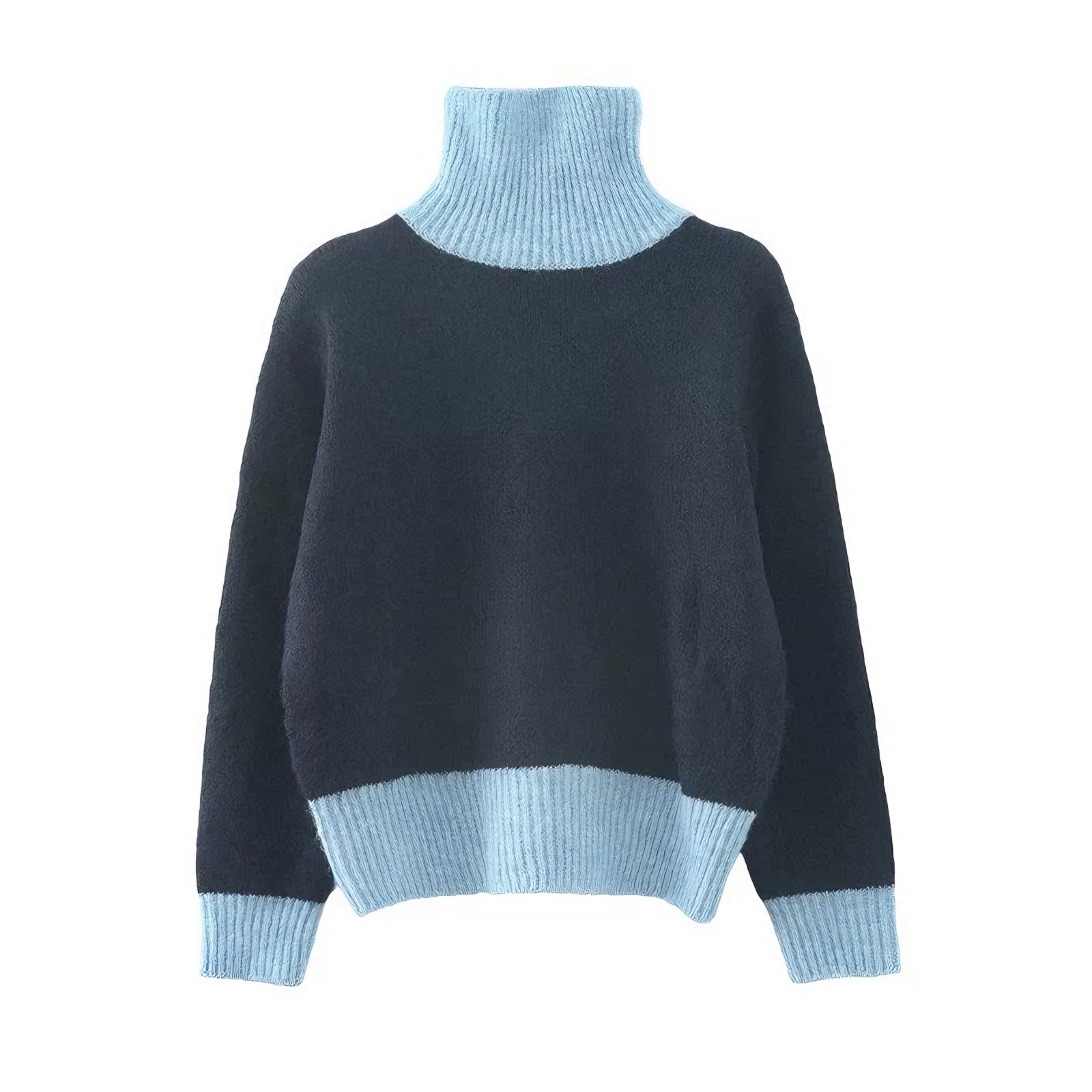 针织秋冬毛衣 女衫 慵懒内糯风软搭设计感冬季 打底拼色高领上衣长袖