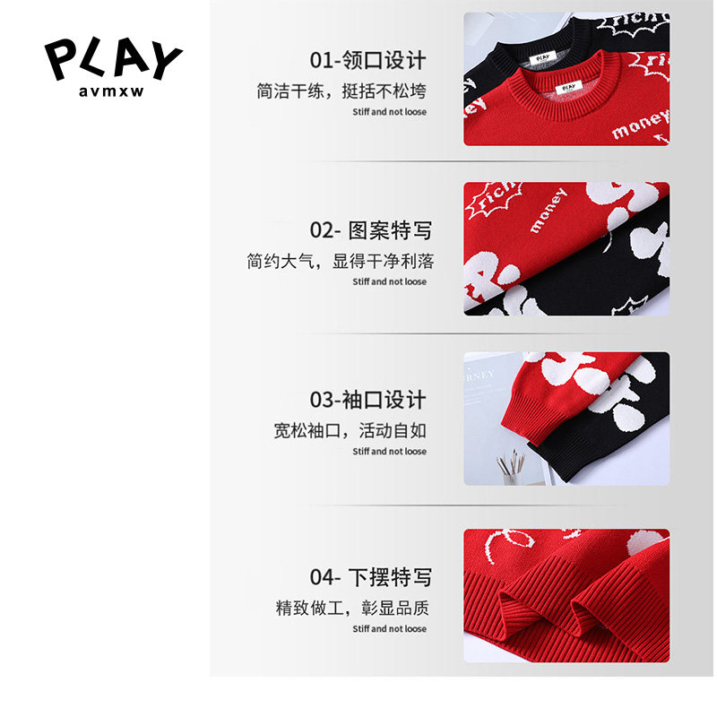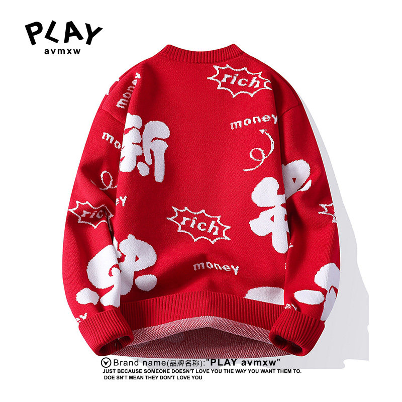 AVMXW 情侣同款 官方针织衫 新款 潮牌保暖本命年大红毛衣 冬季 PLAY