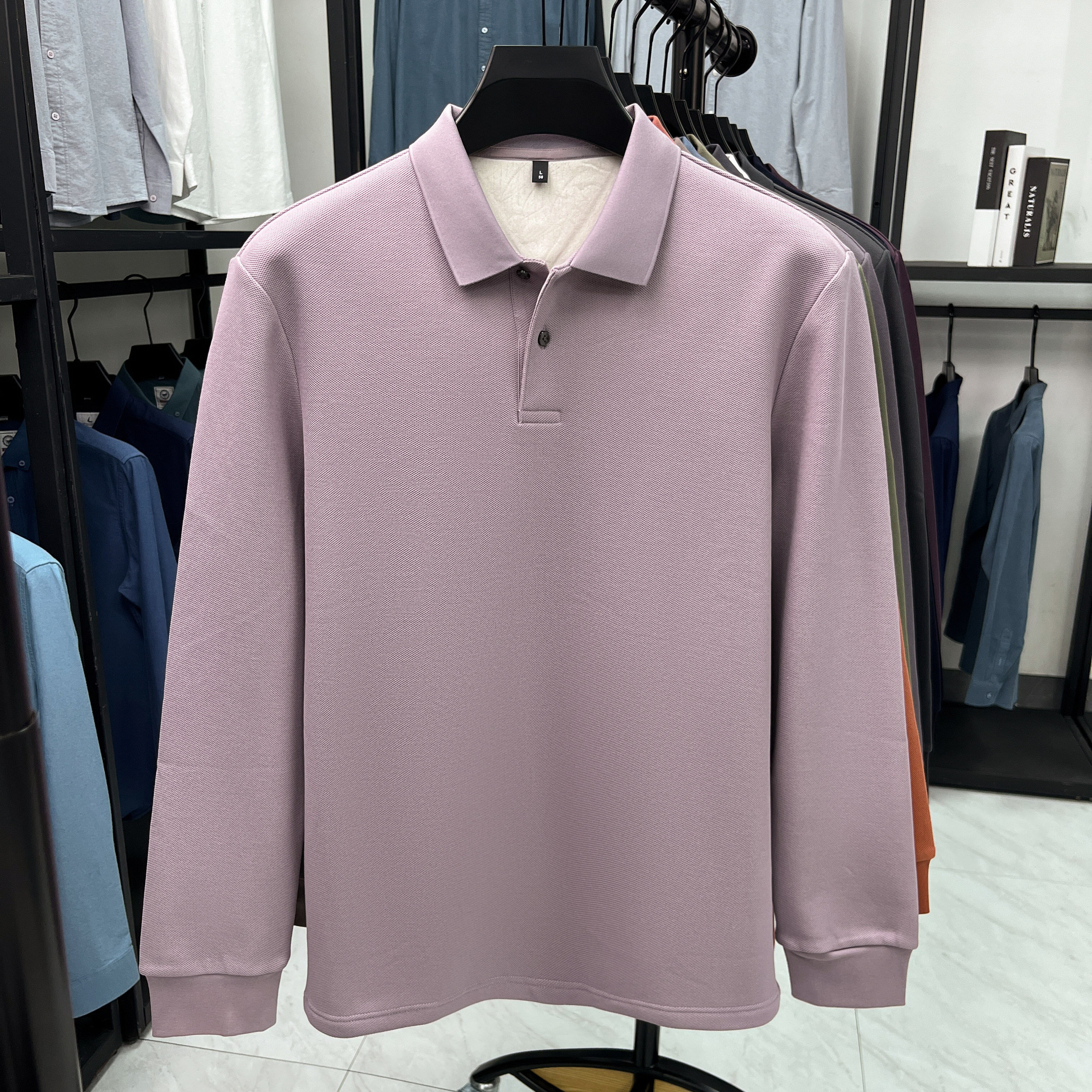 中年纯色保暖2025年冬季 翻领加绒加厚纯棉长袖 男士 花花公子秋冬季