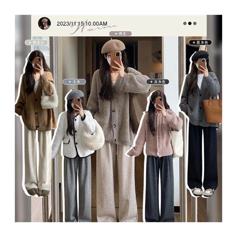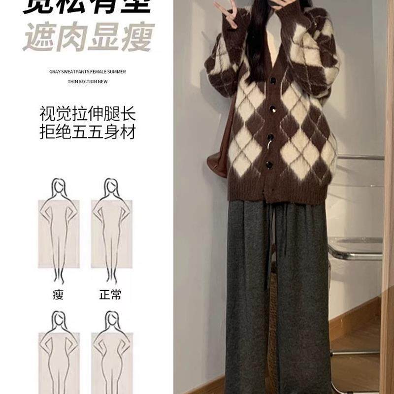 灰色糯米裤 加绒高腰直筒垂感慵懒秋冬宽松阔腿 女春秋2025年新款