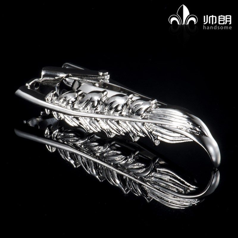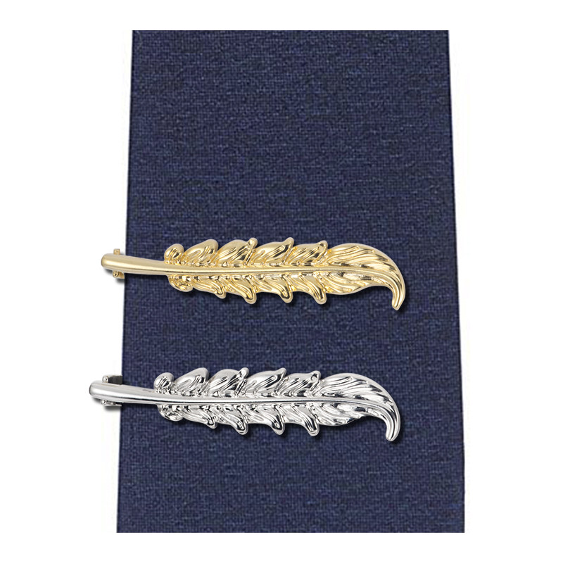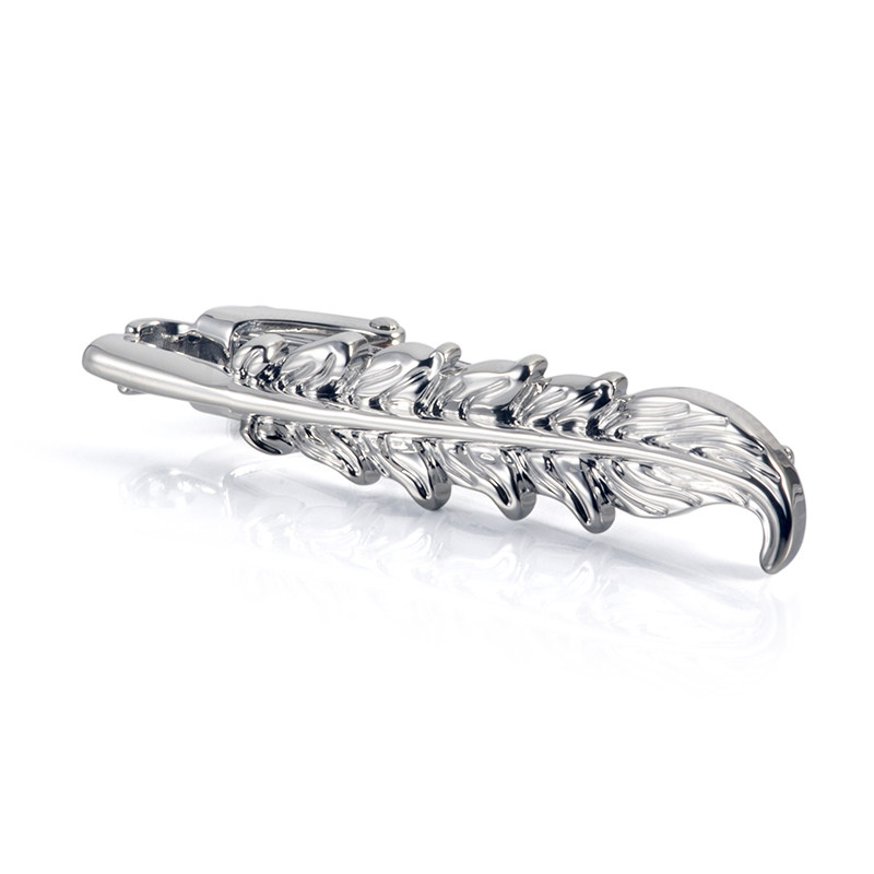领夹商务休闲百搭新郎领带夹子银色呔夹 正装 羽毛领带夹个性 男士