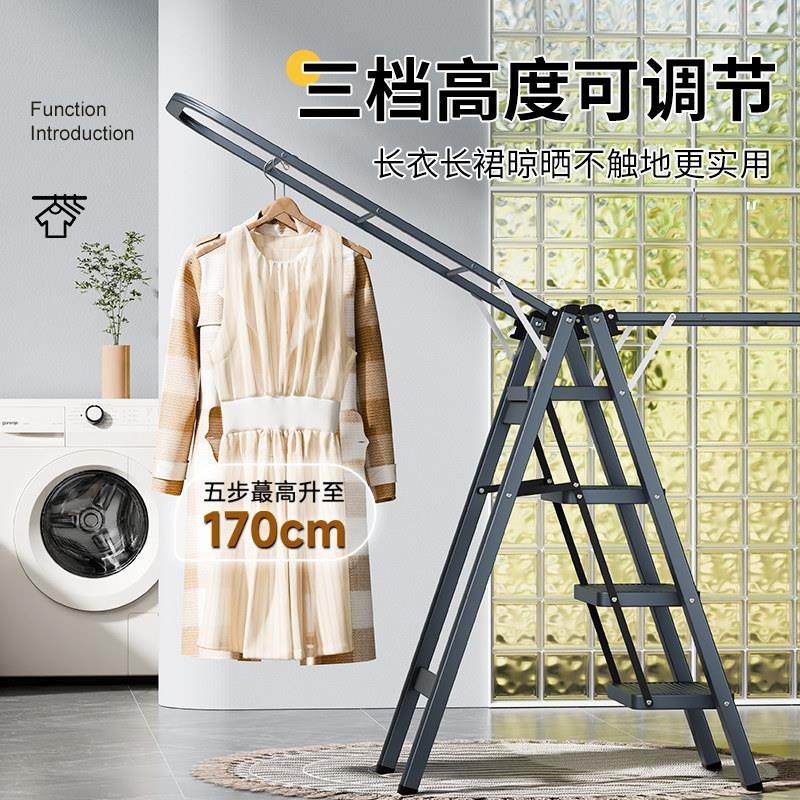 家用梯子折叠落地晾衣架两用多功能加厚室内人字梯伸缩晒被梯神器