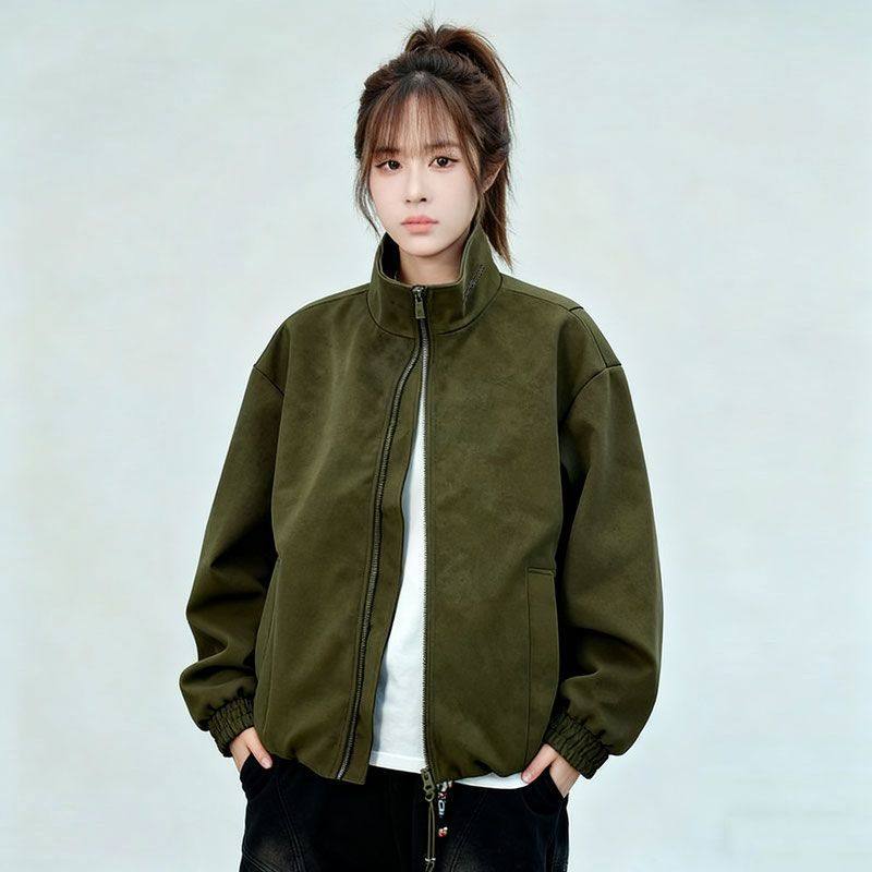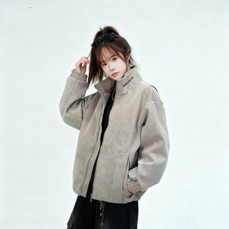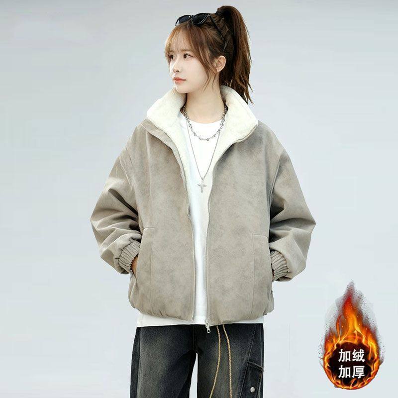 工装 复古夹棉加厚棉服女秋冬新款 派克服外套潮 胖mm美式 300斤大码