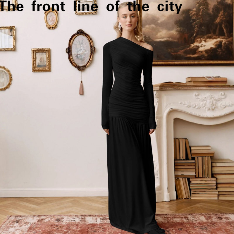 性感辣妹包臀裙绝美一字肩裙子 爆款 黑色挂脖连衣裙女2025新款 夏季