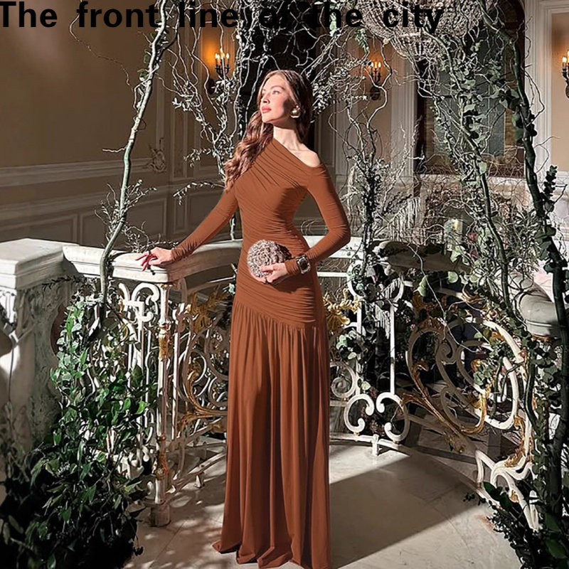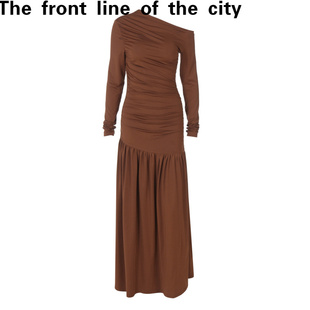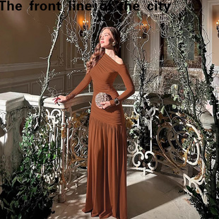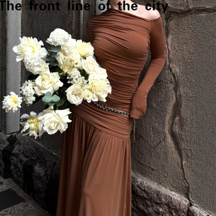 秋冬季 显瘦包臀毛衣裙子 纯欲辣妹一字肩翻领针织连衣裙女收腰修身