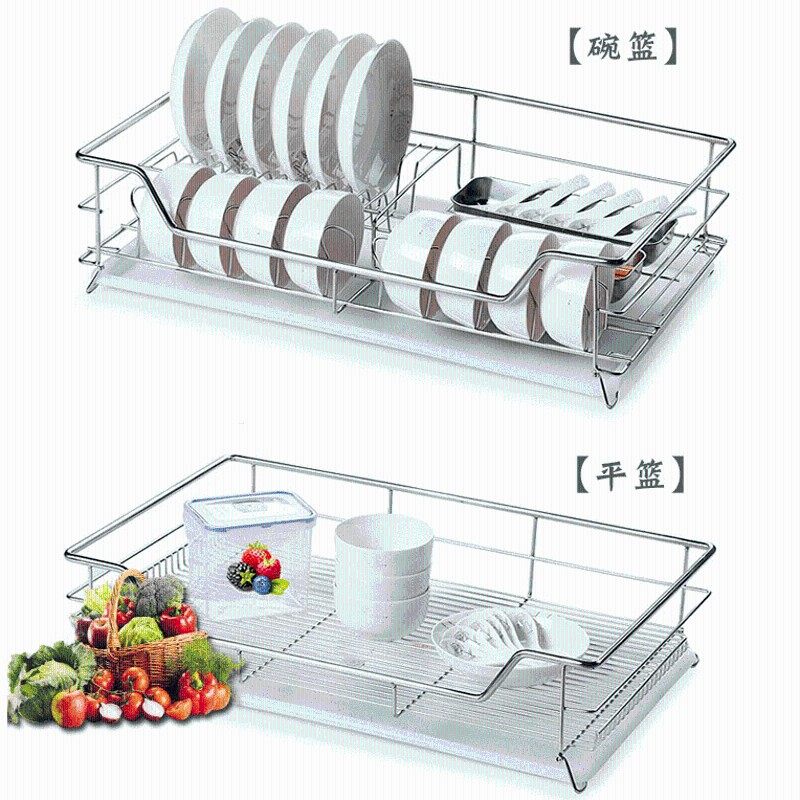 橱柜拉篮置物架新款 改造调料收纳筐 不锈钢拉篮碗碟拉篮架推拉式