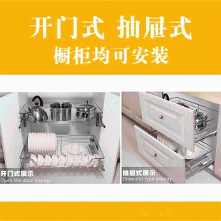 悍高橱柜拉篮双层抽屉式 内置碗架304不锈钢厨房收纳调味篮碗碟篮