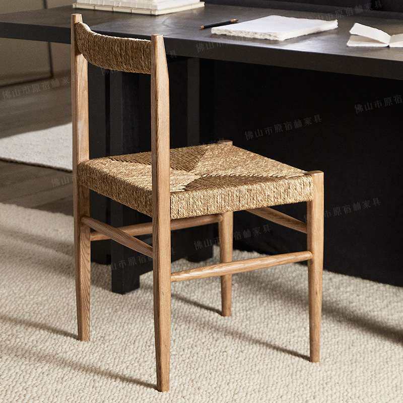 实木复古餐椅木质编织藤编 ZARA椅子诧寂风酒店民宿餐厅椅子