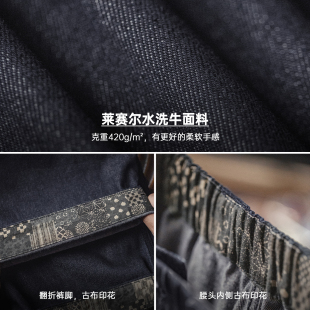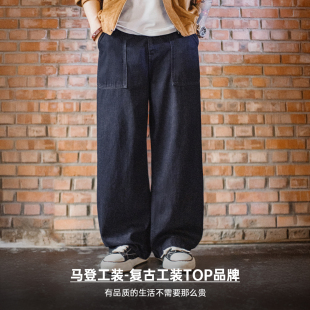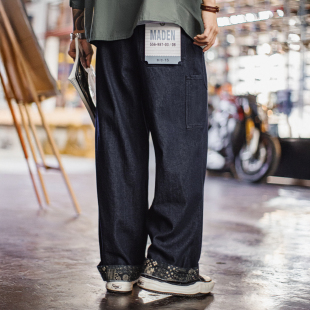 直筒BORO阔腿深蓝色宽松休闲裤 古布水洗牛仔裤 子男春 美式 马登工装