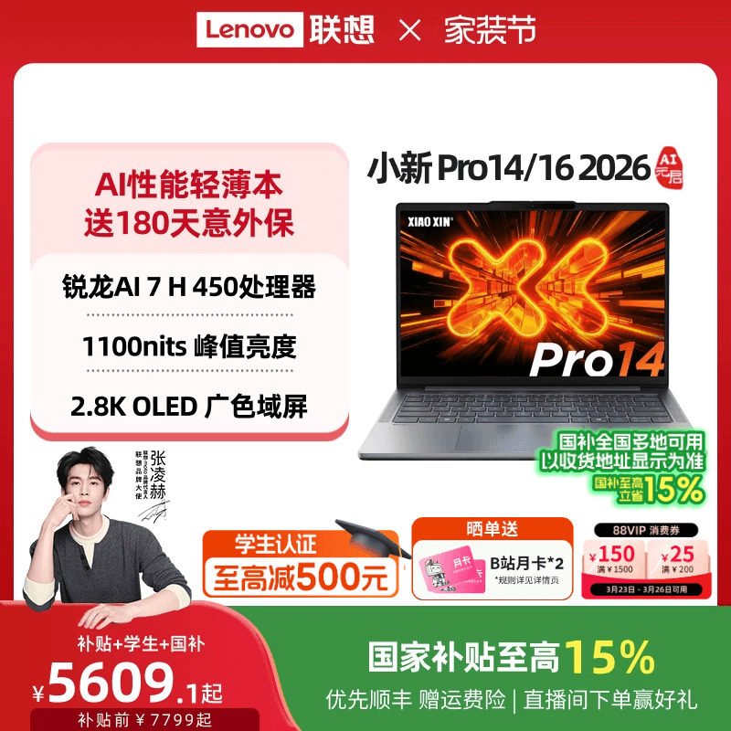 联想小新Pro14 Pro16 88券 16英寸轻薄本学生游戏笔记本电脑官方店电脑笔记本 2026 国补 锐龙版 GT可选
