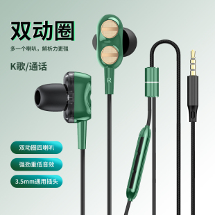 K66双动圈4喇叭入耳式 有线重低音苹果安卓圆孔线控通话带麦耳机