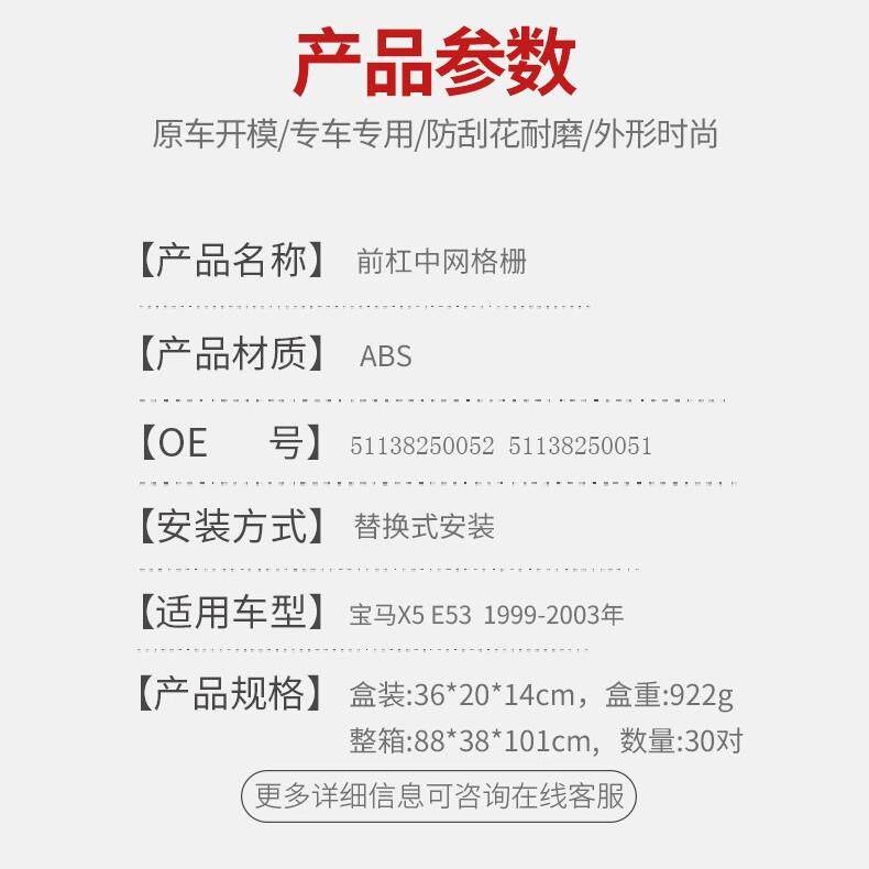 适用于宝马X5E5399 中网双线哑黑中网双线格栅中网 03年改装